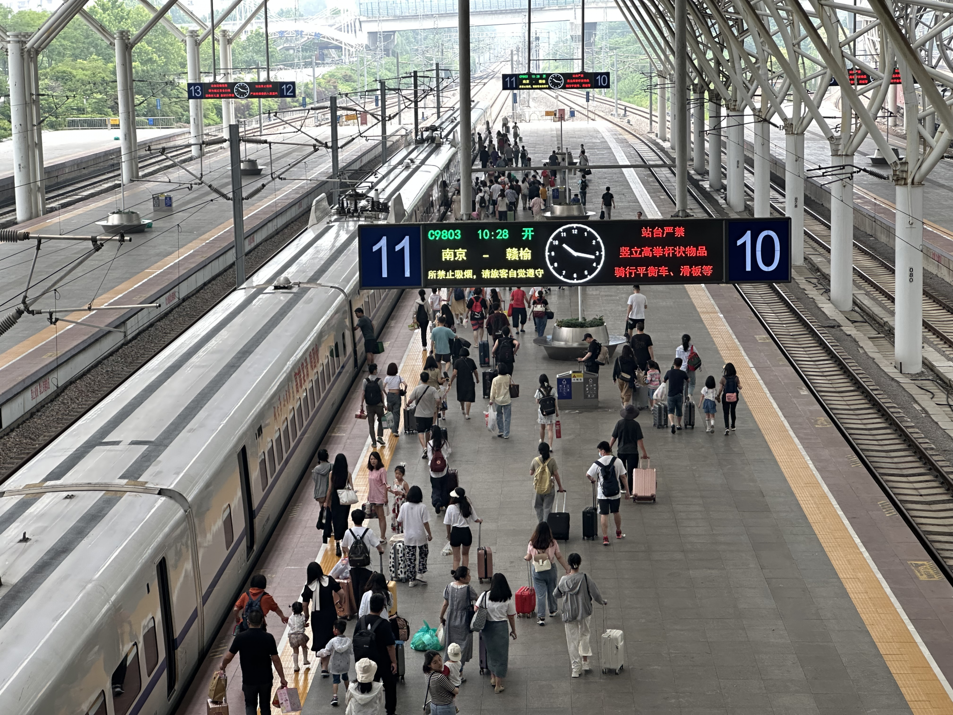6月22日,铁路南京站迎来旅客出行高峰,全天预计发送旅客33.5万人次,其中南京站9.2万人次,南京南站22.5万人次,宜兴等七个站1.8万人次。客流主要以上海、杭州、芜湖、徐州等方向的旅游流、探亲流、学生流为主。