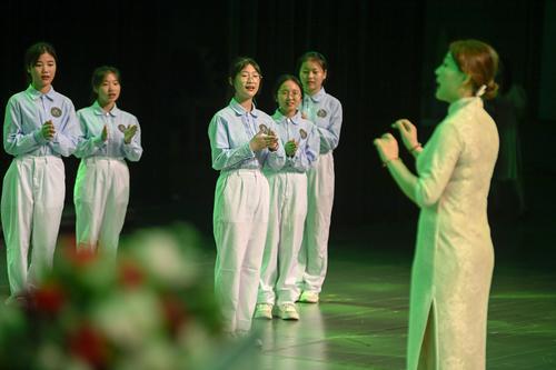 学校合唱团带来的《灯火里的中国》6月29日上午,盐城市亭湖初级中学举行主题为《追求卓越展青春 志存高远创未来》的青春仪式,千名初二学子用一次青春的仪式让老师和家长见证自己朝气蓬勃的成长。 记者 周晨阳 摄