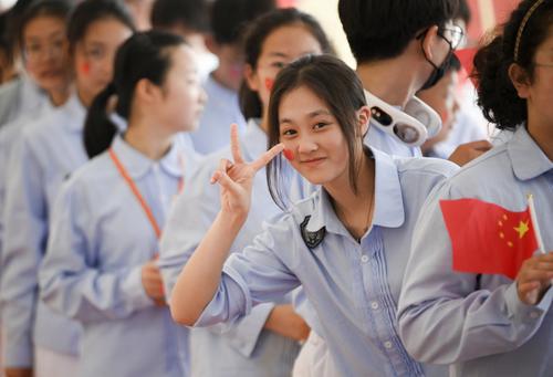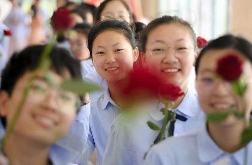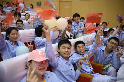 千名初二学生参加活动。6月29日上午,盐城市亭湖初级中学举行主题为《追求卓越展青春 志存高远创未来》的青春仪式,千名初二学子用一次青春的仪式让老师和家长见证自己朝气蓬勃的成长。 记者 周晨阳 摄