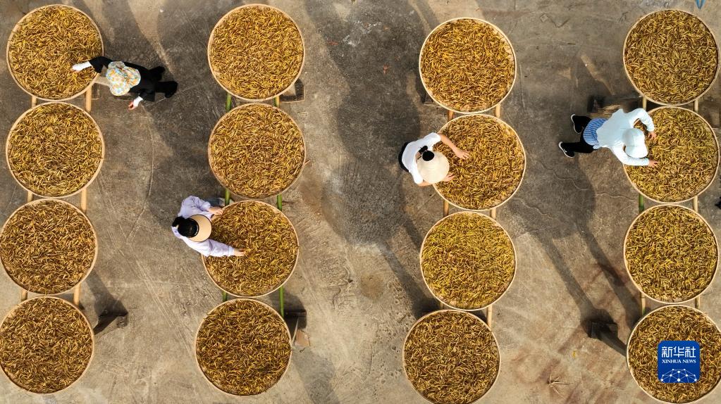 连日来,湖南省衡阳市祁东县黄花菜进入采收旺季,当地菜农抢抓农时采摘、加工、晾晒黄花菜。祁东种植黄花菜有着悠久的历史,形成了从种植到加工全链条覆盖,有效带动当地农户增收致富。新华社发(曹正平摄)