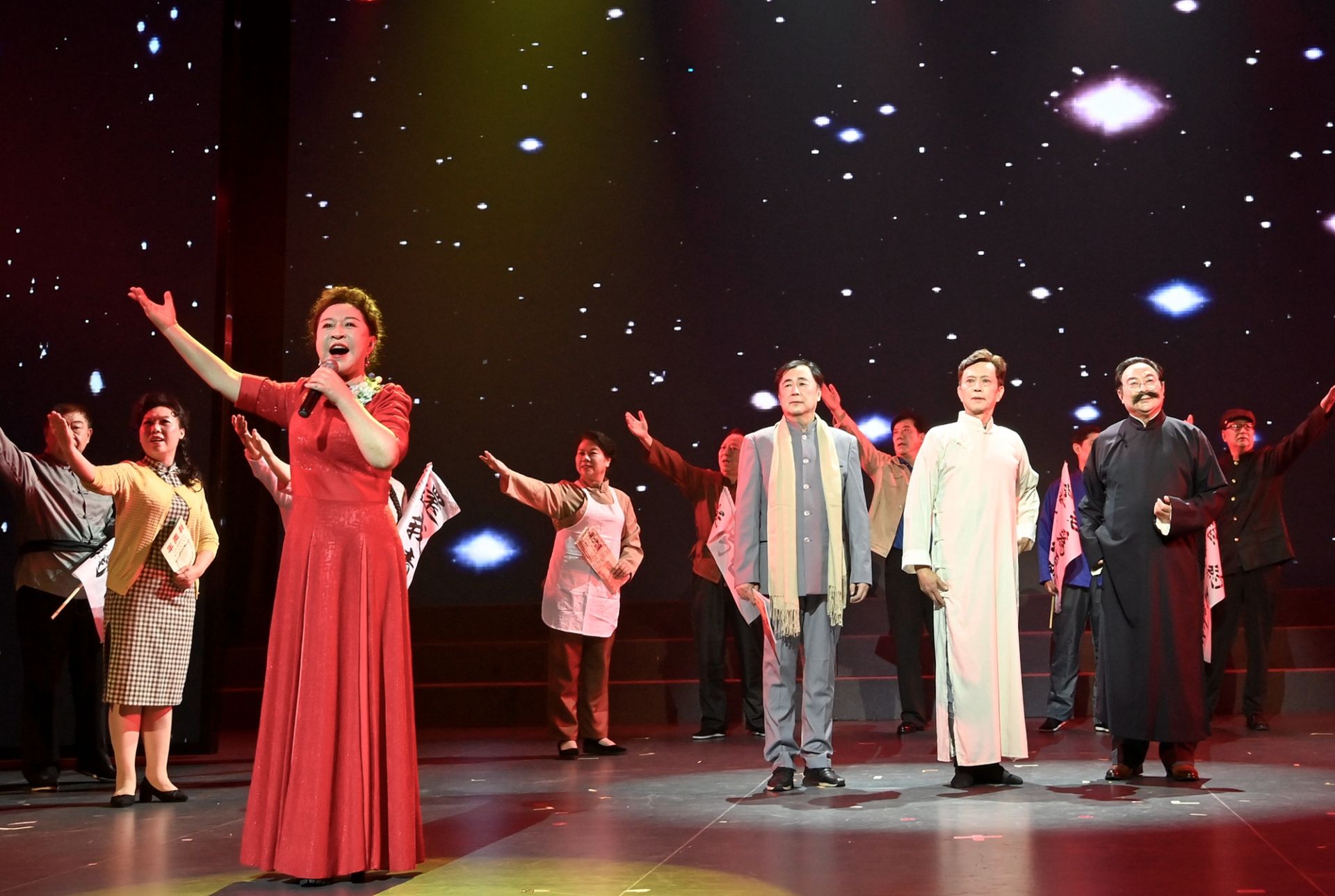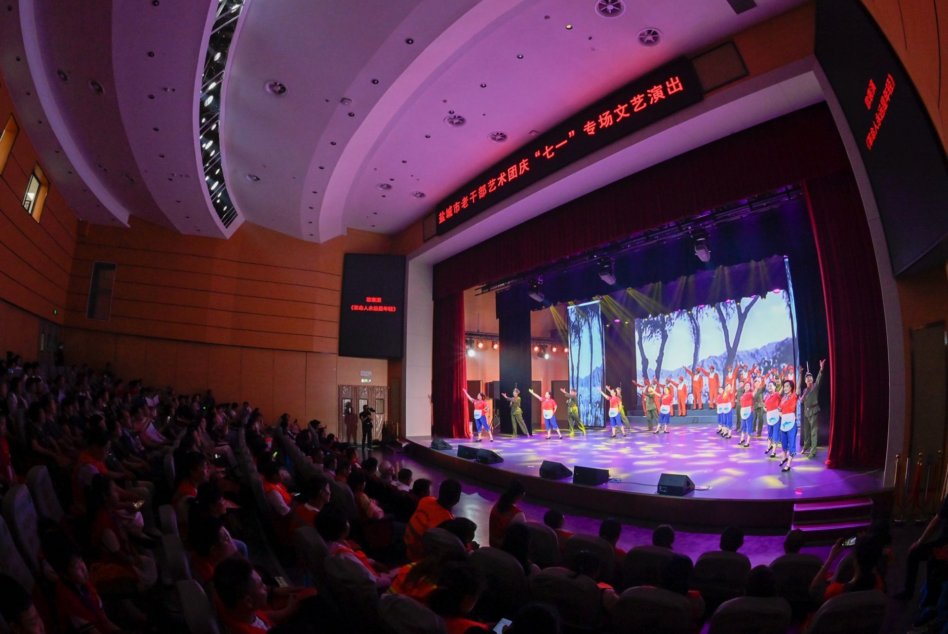 7月1日下午,《走向未来》盐城市老干部艺术团庆“七一”专场文艺演出在市文化馆群星剧场举行。市老干部艺术团是由我市机关退休干部、老知识分子、老文艺工作者组成的艺术团体,精彩的节目再现了党带领中国人民从站起来、富起来到强起来的伟大奋斗历程,表达了老同志们爱党、颂党的心声。数百名环卫工人、盐阜大众报发行投递员、盐城晚报小记者观看了演出。 盐阜大众报报业集团记者 周晨阳 摄