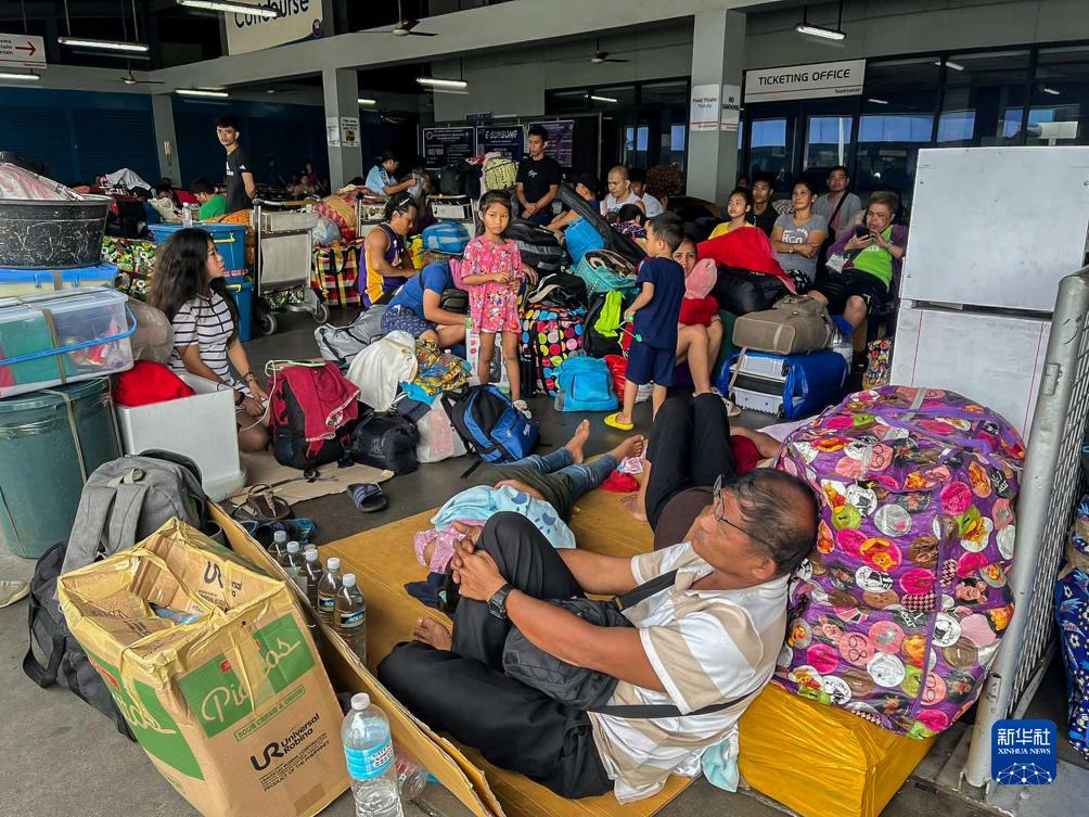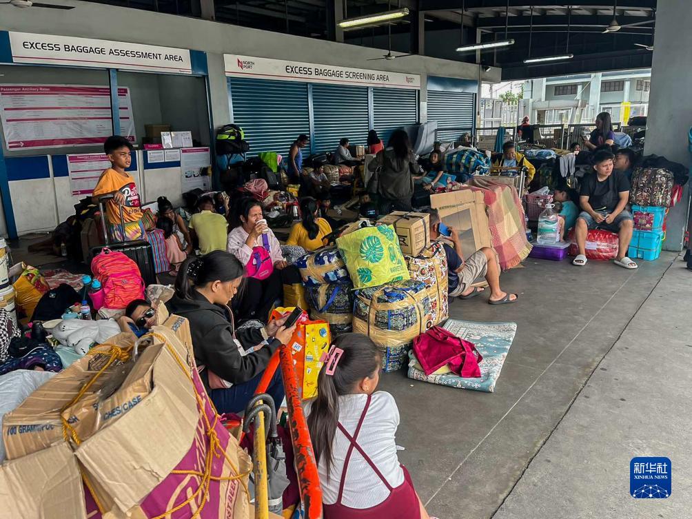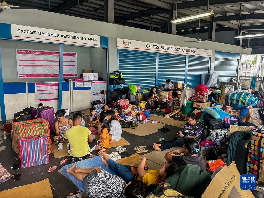 7月26日,受台风影响,大量旅客滞留在菲律宾吕宋岛的马尼拉港。菲律宾吕宋岛多地遭到台风“杜苏芮”袭击。新华社发(菲律宾海岸警卫队供图)