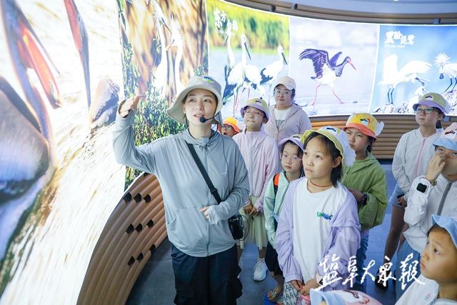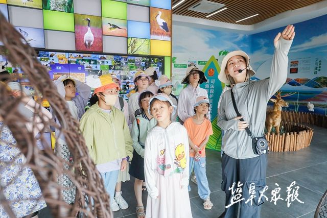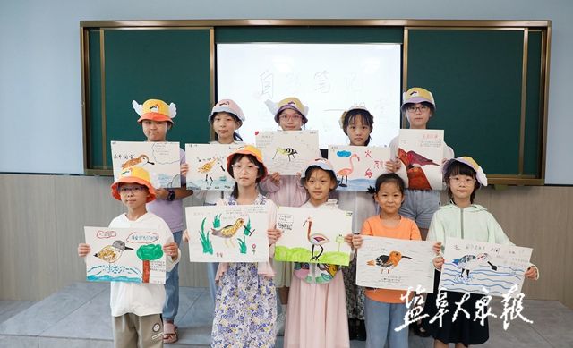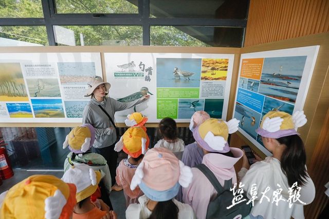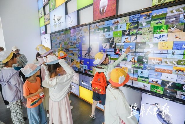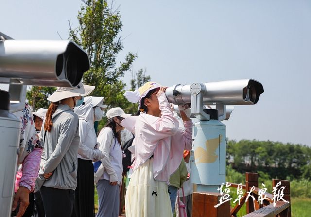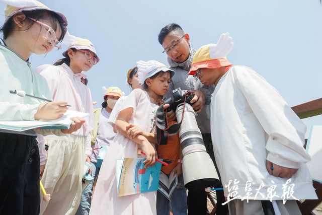 8月15日,《走读自然遗产,呵护大美湿地》公益讲座和爱鸟自然笔记研学活动在世界自然遗产核心区、候鸟天堂条子泥湿地开展。老师手把手地教参加活动的孩子使用操作专业工具、观鸟识鸟,并参观鸟类博物馆,引导大家创作自然笔记。(盐阜大众报报业集团融媒体记者 单丹 摄 通讯员 陆军 )