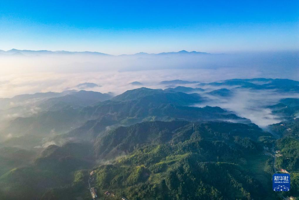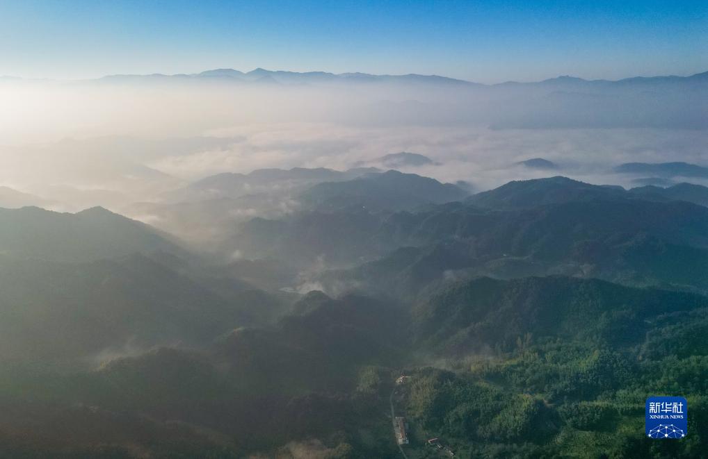 当日早晨,地处大别山区腹地的安徽省六安市霍山县漫水河镇,出现云海盛景,美不胜收。新华社记者 郭晨 摄