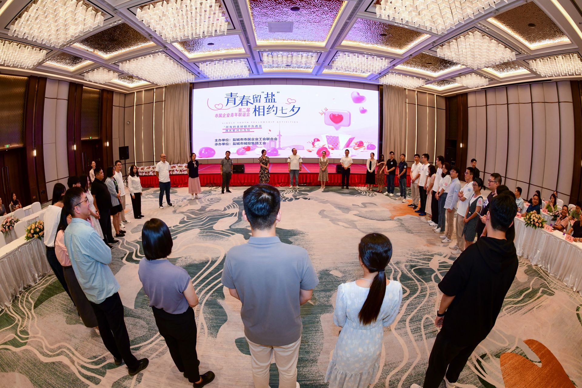 8月22日下午,第二届青年交友联谊会在盐城大洋湾希尔顿逸林酒店成功举办。活动现场,气球、鲜花,浪漫又温馨的布置,营造出了浓厚欢快氛围。在座青年逐渐敞开心扉、绽放激情,在游戏互动中增加默契、加深了解,现场热闹非凡。欢乐有趣的互动小游戏、甜蜜温馨的交流时光,让在场嘉宾在轻松、浪漫的氛围中结交异性,增进友谊。盐阜大众报报业集团记者 杨毅 摄