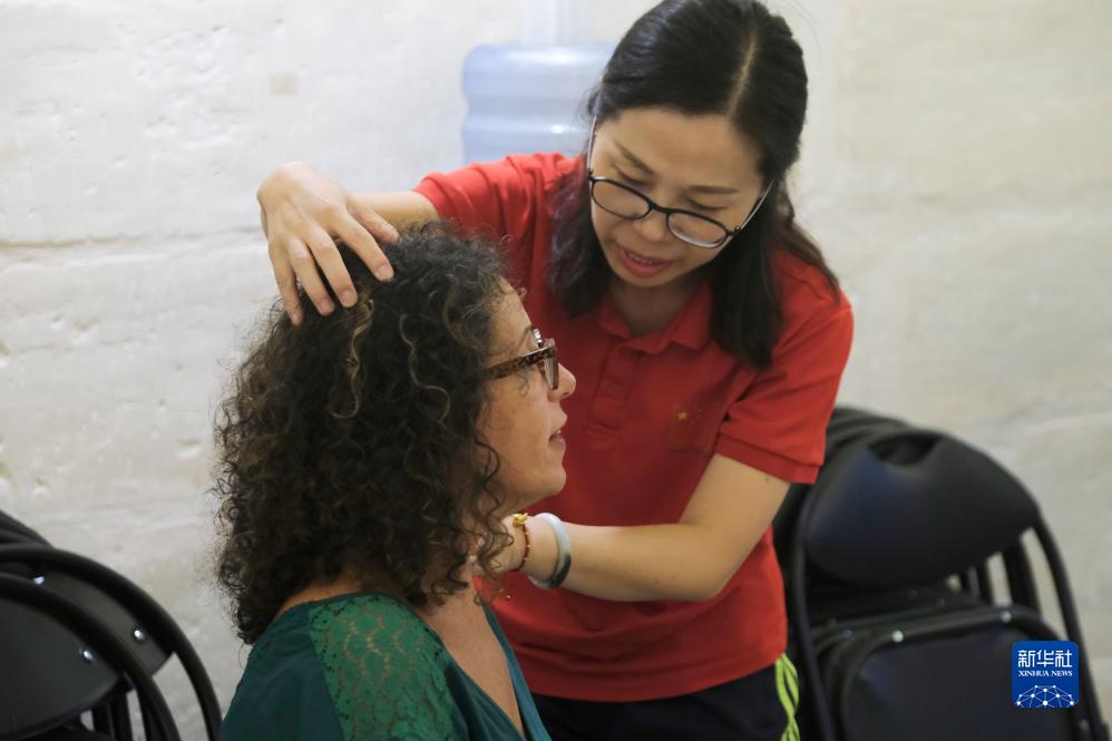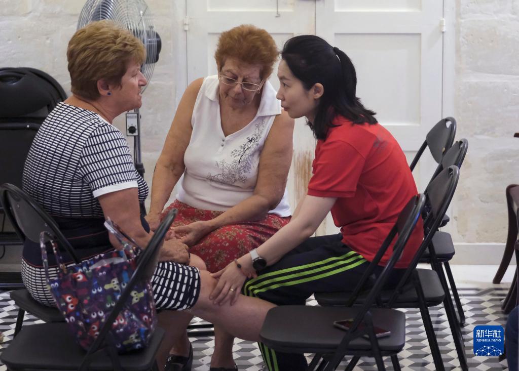 中国援马耳他医疗队28日晚在马耳他榟橔市开展“中国红”关爱老年群体健康行活动,为当地民众尤其是老年人提供健康咨询及义诊服务,并向该市政府捐赠了膏药、红花油等医疗物资。 新华社发(乔纳森·博格 摄)