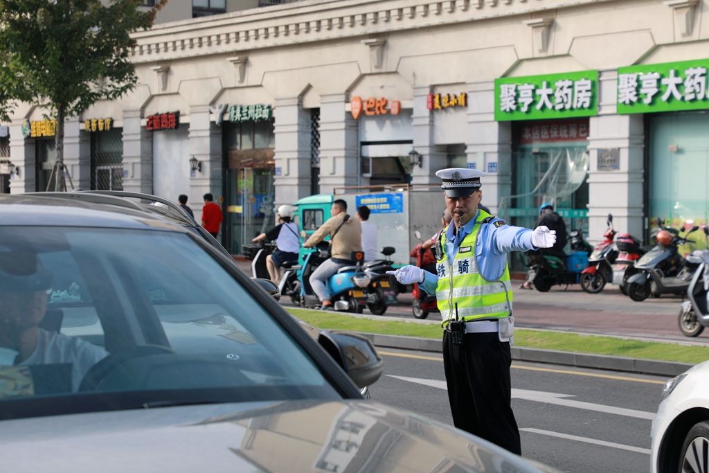 聚亨路小学门口,交警提前上班,指挥交通。9月4日,我市中小学陆续开学。当天上午,市交警部门来到学校门口,维护秩序,疏导交通,保障学生安全上学。盐阜大众报报业集团融媒体记者 单丹 摄