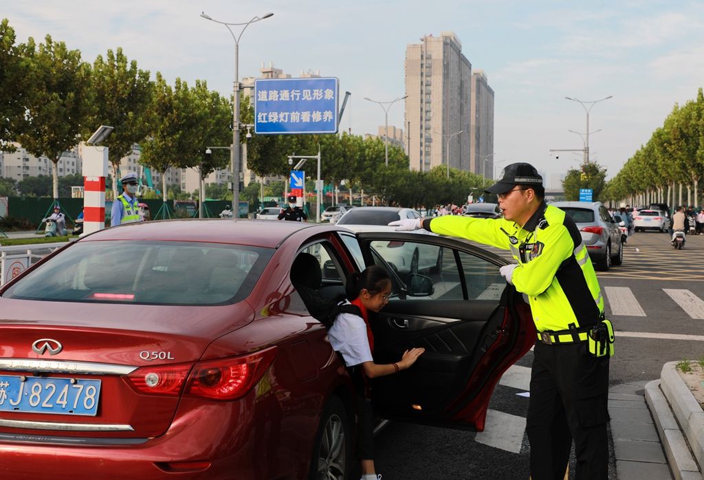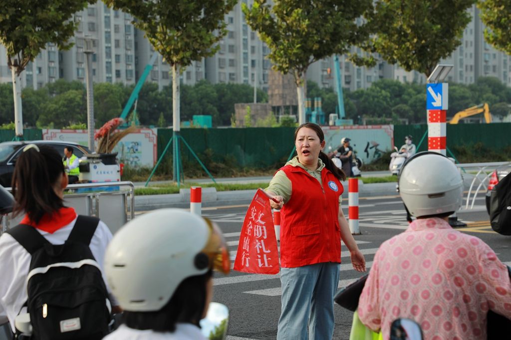 志愿者走上街头,维持交通秩序。9月4日,我市中小学陆续开学。当天上午,市交警部门来到学校门口,维护秩序,疏导交通,保障学生安全上学。盐阜大众报报业集团融媒体记者 单丹 摄