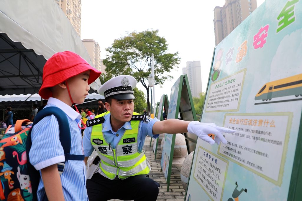 格林幼儿园,交警正在给孩子们普及交通知识。9月4日,我市中小学陆续开学。当天上午,市交警部门来到学校门口,维护秩序,疏导交通,保障学生安全上学。盐阜大众报报业集团融媒体记者 单丹 摄