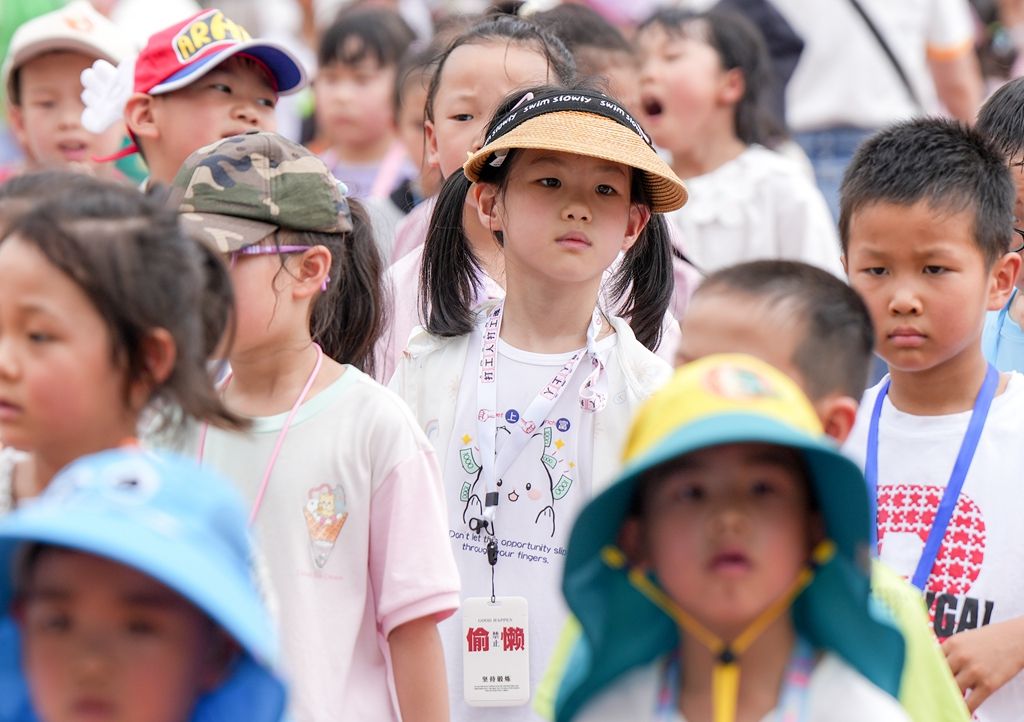 一年级学生第一次参加开学典礼。9月4日上午,市盐渎实验学校举行2023年秋学期“以爱润心 快乐起航”开学典礼,全体师生欢聚一堂,带着对暑假生活的美好回忆,带着对新学期的无限憧憬,共同开启新的一学年。盐阜大众报报业集团融媒体记者 周晨阳 摄