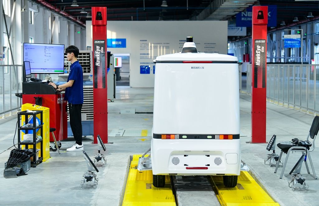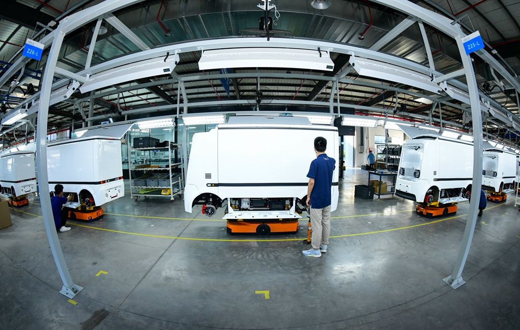 9月5日,在盐南高新区新石器盐城工厂生产车间,技术人员正在组装无人驾驶车。新石器(盐城)智能制造有限公司成立于2021年6月,坐落于江苏省盐城市盐南高新区西伏河机器人产业园。工厂总投资5亿元,占地面积42667m2,约64亩,建筑面积15000m2。工厂集生产、检测、无人驾驶标定测试、教育等功能为一体。产线设计节拍6JPH,产能10000台/年。2023年产值预计可达1.5亿元。盐阜大众报报业集团融媒体记者 杨毅 摄