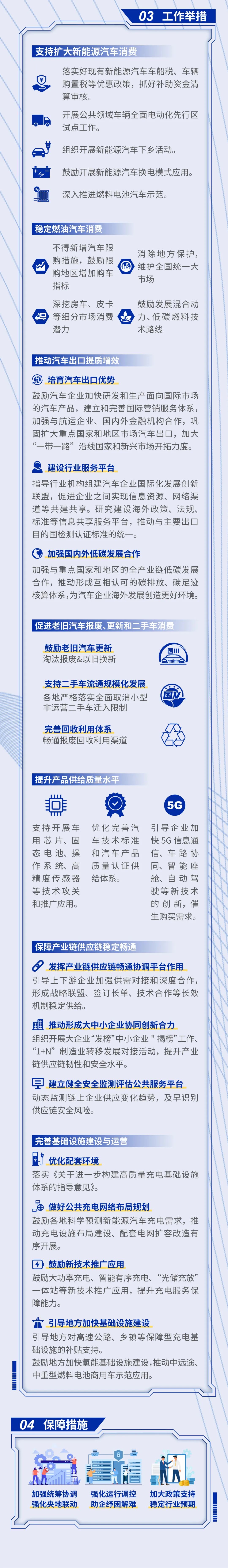 促进老旧汽车报废、更新和二手车消费方面,提出鼓励地方综合运用经济、技术等手段推动国三及以下排放标准乘用车、违规非标商用车淘汰报废,推动完善报废机动车回收利用体系,支持二手车流通规模化发展。