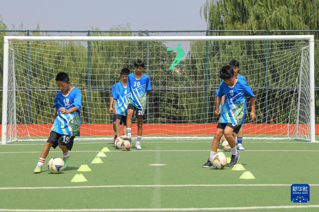 9月7日,山东省青岛第三十三中学的学生在进行足球训练。 新学期开始,山东省青岛市积极落实“双减”政策,全面推进学生素质教育,利用大课间组织学生开展足球、跳绳、乐器等文体活动,让学生在丰富多彩的大课间中陶冶情操,快乐成长。 新华社发(张鹰 摄)