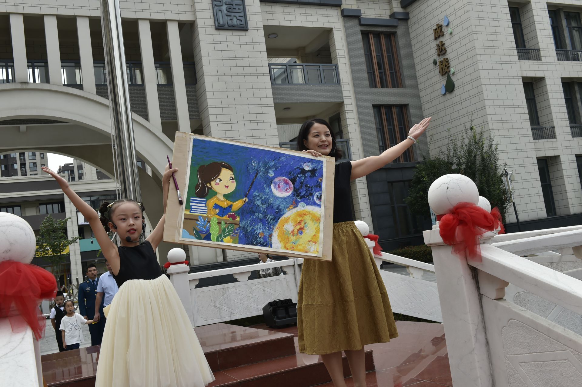 9月15日上午,串场河小学举行2023年秋学期一年级新生入学仪式。新入学的小学生们在老师的带领下,说出自己的梦想,把自己的心愿、家长和老师的祝福封存在时光瓶中,等到三年级、六年级的时候再次开启,与小学时光里的自己三次对话。小学生们每人还收到一本新华字典,从字典中认识“人、志、润”三个字。图为亲子才艺展示“画出梦想”。盐阜大众报报业集团融媒体记者 张一轩 摄