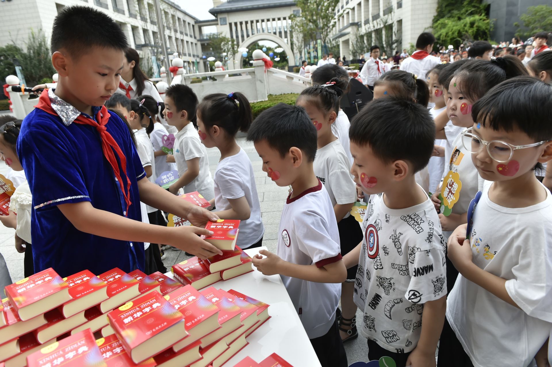 9月14日上午,串场河小学举行2023年秋学期一年级新生入学仪式。新入学的小学生们在老师的带领下,说出自己的梦想,把自己的心愿、家长和老师的祝福封存在时光瓶中,等到三年级、六年级的时候再次开启,与小学时光里的自己三次对话。小学生们每人还收到一本新华字典,从字典中认识“人、志、润”三个字。盐阜大众报报业集团融媒体记者 张一轩 摄