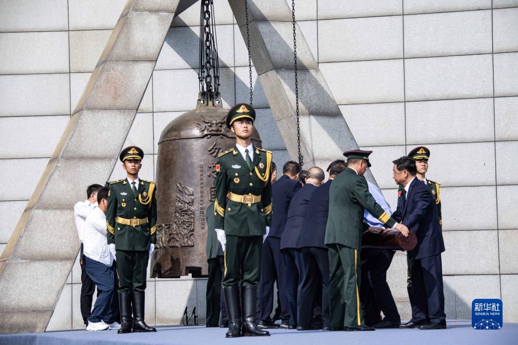 今年是“九一八”事变爆发92周年,9月18日上午,勿忘“九一八”撞钟鸣警仪式在沈阳“九一八”历史博物馆残历碑广场举行。 新华社发(陈松 摄)