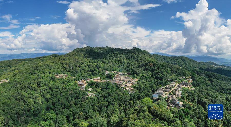 景迈山古村寨掩映在大片山林茶园之间(8月29日摄,无人机照片)。9月17日,中国“普洱景迈山古茶林文化景观”项目在沙特利雅得举行的第45届世界遗产大会上通过审议,列入《世界遗产名录》,成为中国第57项世界遗产。新华社记者 李贺 摄