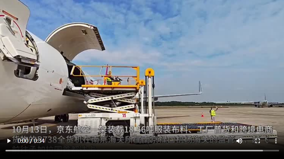 10月13日上午10点15分,伴随着阵阵的轰鸣声响,一架装载着18.56吨服装布料、工厂普货和跨境电商货物的京东航空B738全货机,从南京禄口机场飞往孟加拉国首都达卡。
