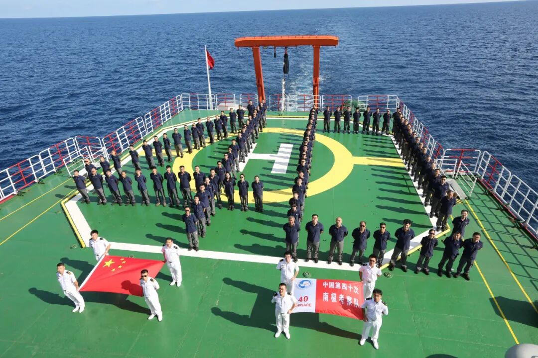 ◎ 中国第40次南极考察队穿越赤道进入南半球。