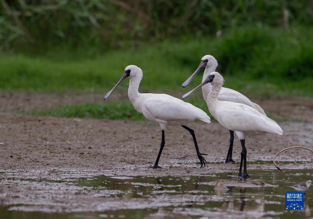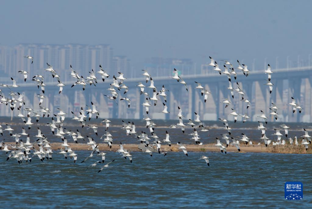 眼下正值越冬候鸟迁徙季节。连日来,大批从北方飞来越冬的候鸟在福建省福州、泉州等地停歇觅食。国家一级重点保护野生动物勺嘴鹬和黑脸琵鹭等珍稀鸟类数量持续增多。  近年来,福建省开展退塘还湿、河道综合整治、海漂垃圾治理、恢复植被多样性等一系列生态修复工程,自然生态环境持续向好。每年春秋两季都吸引大批迁徙候鸟停歇觅食、繁衍生息。  新华社记者 魏培全 摄
