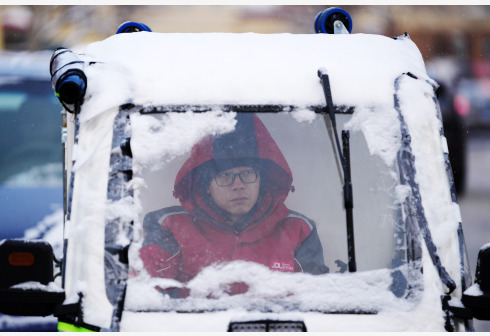 11月23日,在哈尔滨市,快递员驾驶三轮车在送快递。受寒潮影响,黑龙江省各地近日持续降温,预计大兴安岭北部地区最低气温可突破零下30摄氏度。新华社记者 王建威 摄