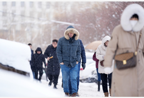 11月23日,哈尔滨市民在雪中前行。受寒潮影响,黑龙江省各地近日持续降温,预计大兴安岭北部地区最低气温可突破零下30摄氏度。新华社记者 王建威 摄