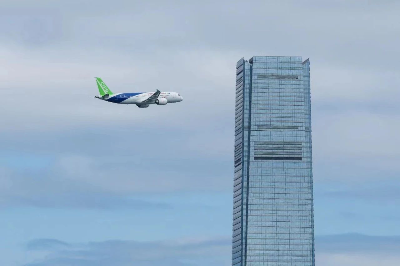 ◎ 16日,一架C919大型客机从香港国际机场起飞,环绕香港岛两圈进行飞行演示,这是国产商用飞机首次翱翔香港上空。