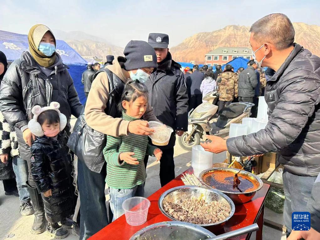 12月19日,在甘肃临夏积石山县大河家镇大河村安置点,兰州餐饮企业“筷上瘾”为受灾群众送来爱心牛肉面。 12月18日23时59分,甘肃临夏州积石山县发生6.2级地震。 当前,甘肃、青海已组织力量开展抢险救援,并紧急调拨帐篷、折叠床、棉被等救灾物资运抵灾区,全力做好受灾群众救助。目前抗震救灾各项工作正在紧张有序进行。 新华社记者 马希平 摄