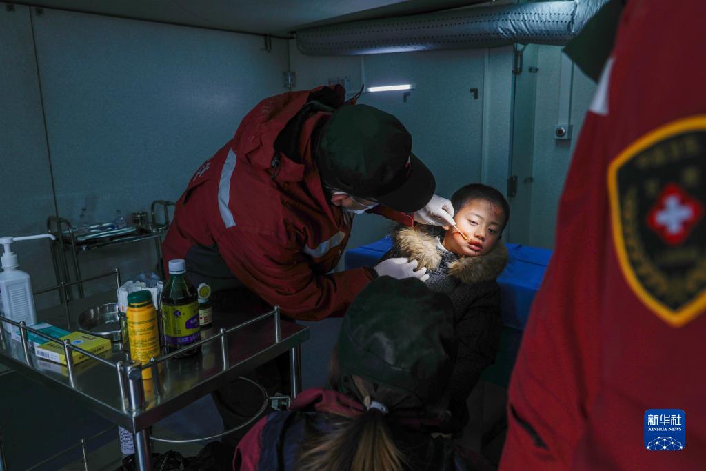 12月19日,在甘肃临夏积石山县大河家镇大河村安置点,甘肃省人民医院的医生在移动手术车上为小朋友清理伤口。 12月18日23时59分,甘肃临夏州积石山县发生6.2级地震。 当前,甘肃、青海已组织力量开展抢险救援,并紧急调拨帐篷、折叠床、棉被等救灾物资运抵灾区,全力做好受灾群众救助。目前抗震救灾各项工作正在紧张有序进行。 新华社记者 方欣 摄