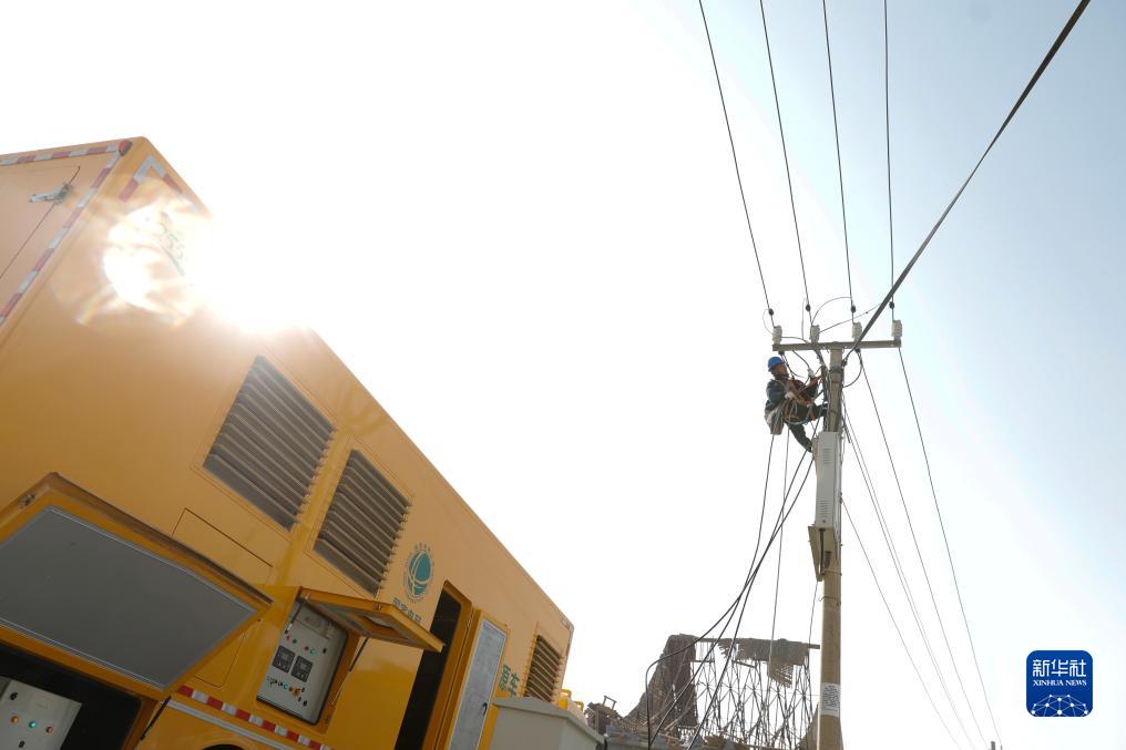 12月19日,在甘肃临夏积石山县大河家镇大河村安置点,电力部门工作人员抢修电力设施。 12月18日23时59分,甘肃临夏州积石山县发生6.2级地震。 当前,甘肃、青海已组织力量开展抢险救援,并紧急调拨帐篷、折叠床、棉被等救灾物资运抵灾区,全力做好受灾群众救助。目前抗震救灾各项工作正在紧张有序进行。 新华社记者 方欣 摄
