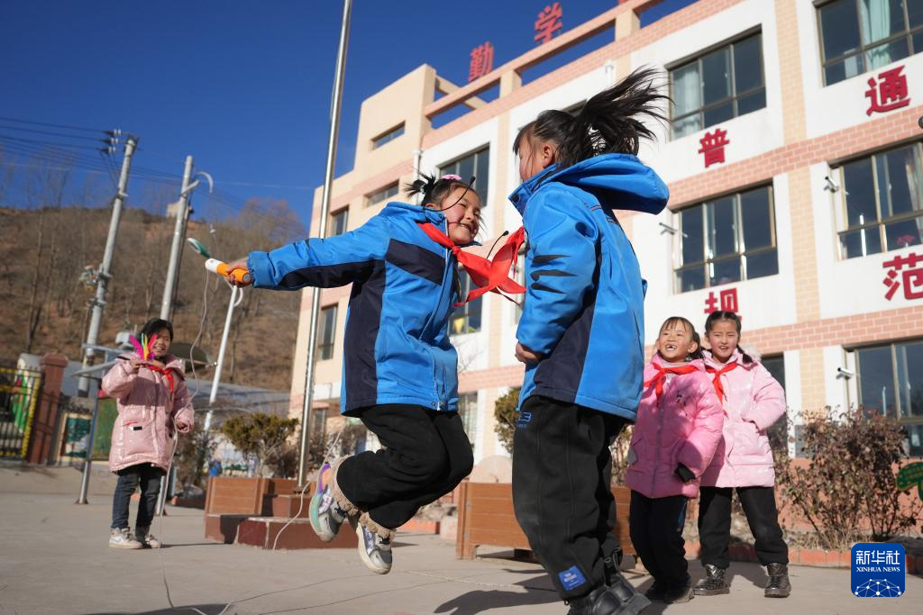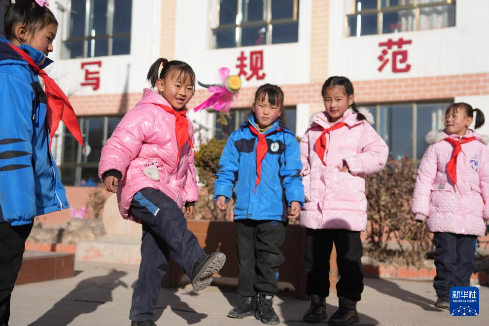 12月25日,积石山县柳沟乡阳山希望小学的学生在课间做游戏。 当日,甘肃积石山地震灾区中小学校开始复课。据积石山县教育局介绍,全县244所学校中,经鉴定能安全使用的学校,学生在12月25日至29日陆续返校上课,没条件开学的学校,教师下沉到安置点开展教学辅导,以尽早恢复教学秩序。 新华社记者 陈斌 摄
