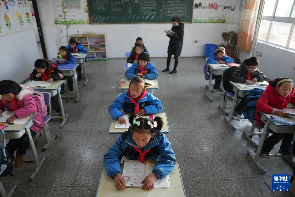 12月25日,积石山县柳沟乡阳山希望小学的学生在上语文课。 当日,甘肃积石山地震灾区中小学校开始复课。据积石山县教育局介绍,全县244所学校中,经鉴定能安全使用的学校,学生在12月25日至29日陆续返校上课,没条件开学的学校,教师下沉到安置点开展教学辅导,以尽早恢复教学秩序。 新华社记者 方欣 摄