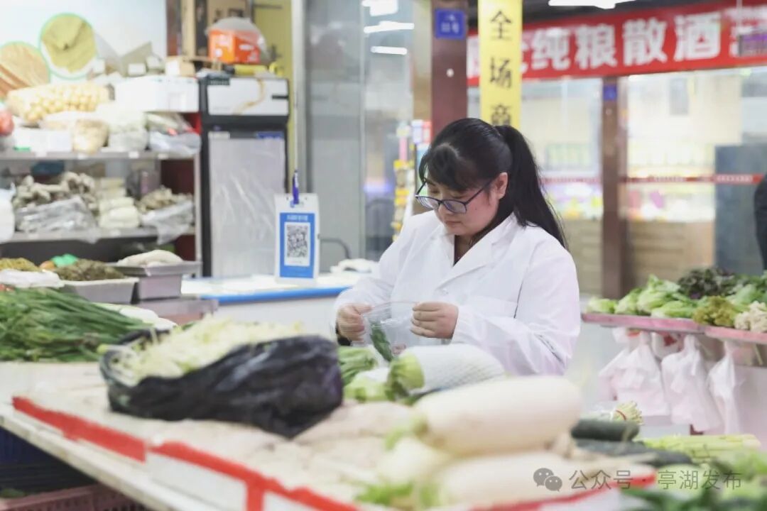 食品安全是重大民生问题。亭湖区积极推进农贸市场依法经营、规范经营、文明经营,通过日常监督和突击检查相结合的方式,不断加强对农贸市场的监管,切实守护群众“舌尖上安全”。上午,双元路农贸市场的市场检测员何静和往常一样拿着样品袋行走到菜摊前,对一批批的蔬菜瓜果、肉类生鲜等进行采样,随即返回快检室,称重、检测、记录、公示……
