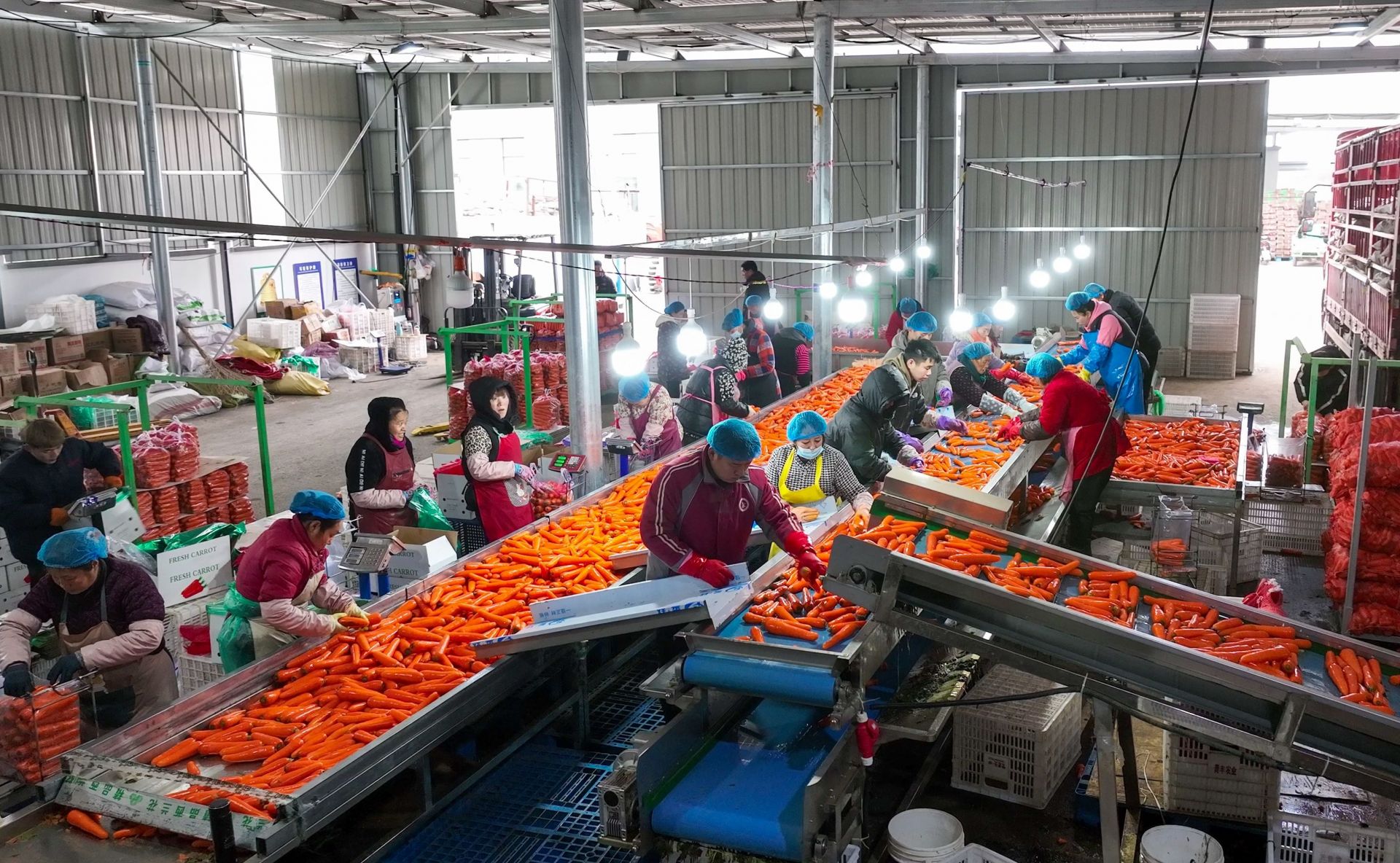 近日,在盐城滨海县界牌镇淮河村保鲜冷库,伴随着隆隆的机器声,一袋袋新鲜采收的胡萝卜被倒入自动化清洗机中,20多名工人正在进行分拣、打包、装车。胡萝卜产品销往全球市场,全年带动劳动力就业120人,年人均增收2万元以上。后期将扩大种植面积,并延伸产业链条,种植、加工、销售一体,为预制菜前端市场提供优质农产品。盐阜大众报报业集团融媒体 记者 杨毅 通讯员 吴泳伸 摄 责任编辑:严成 崔治国 胡祥