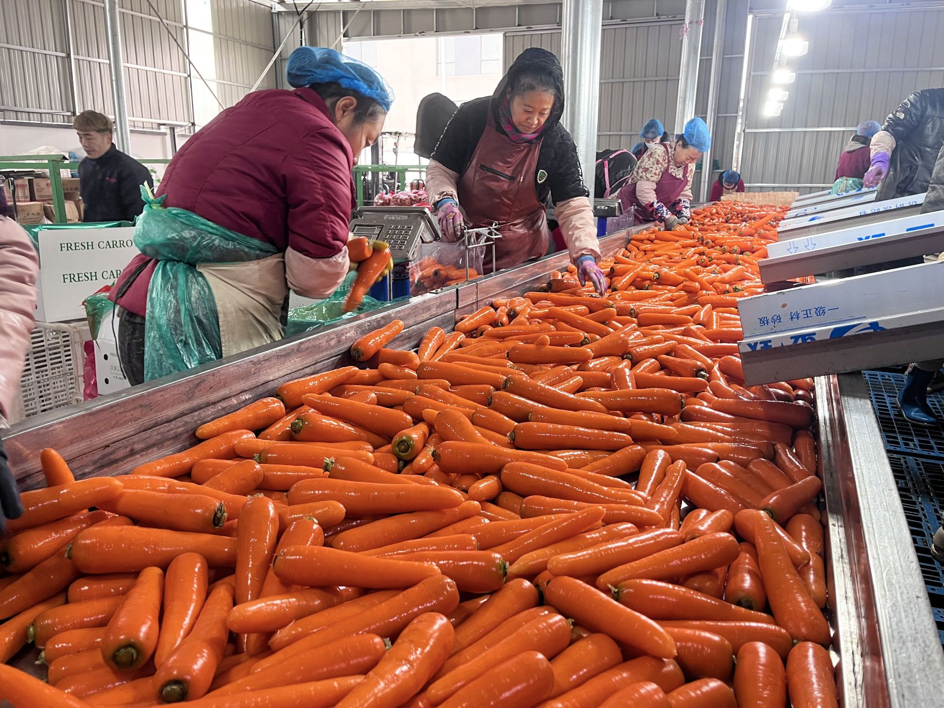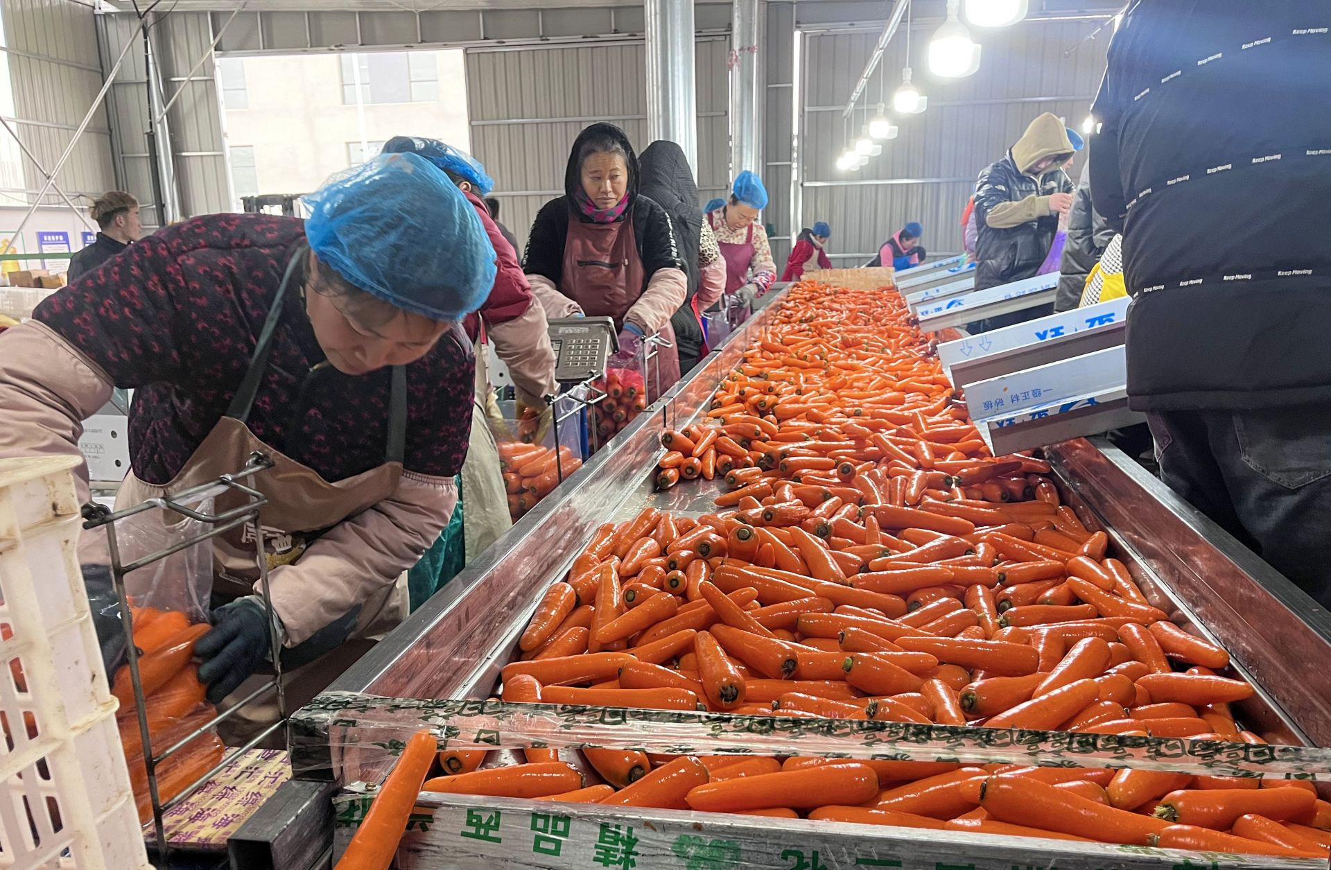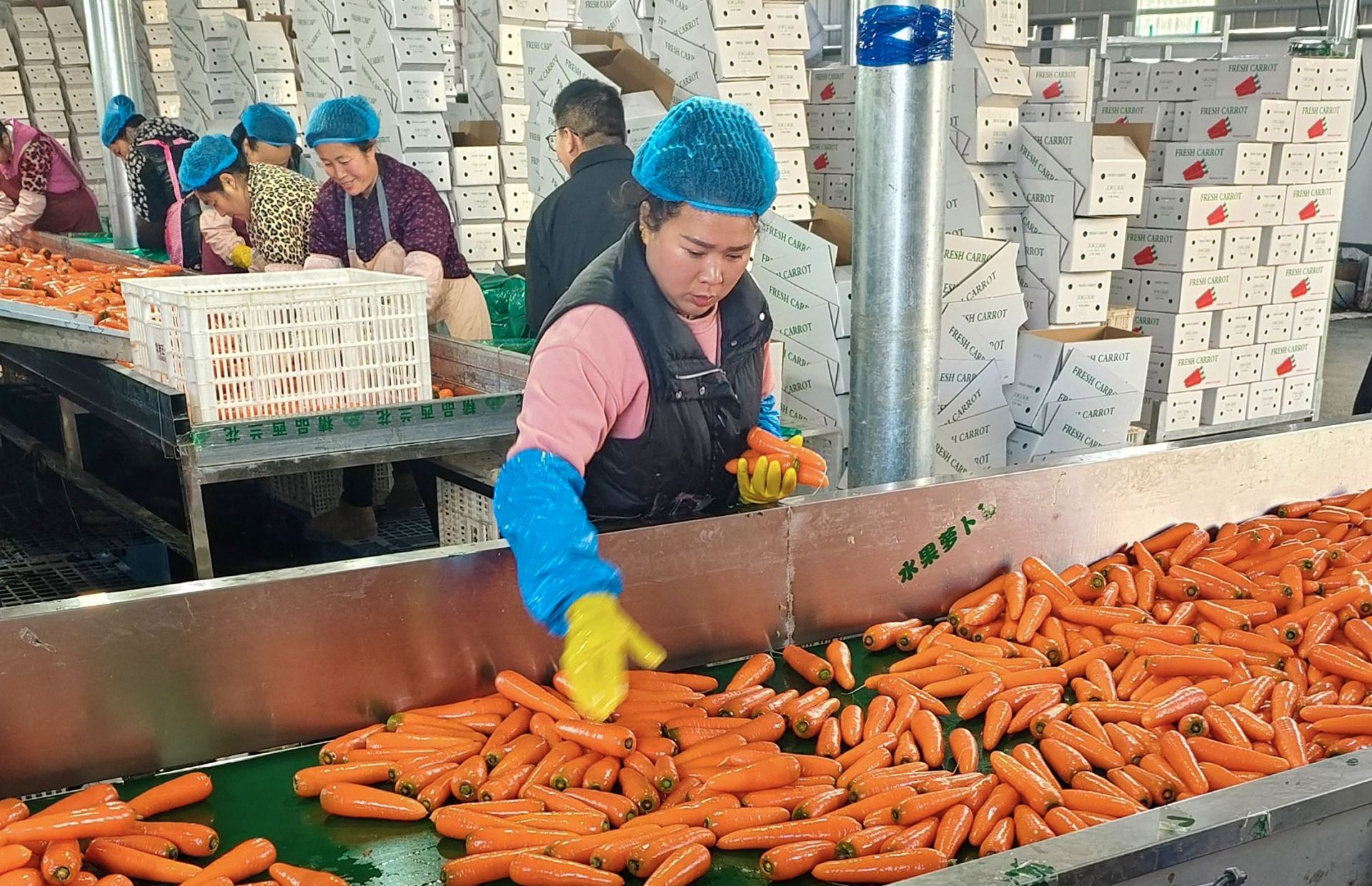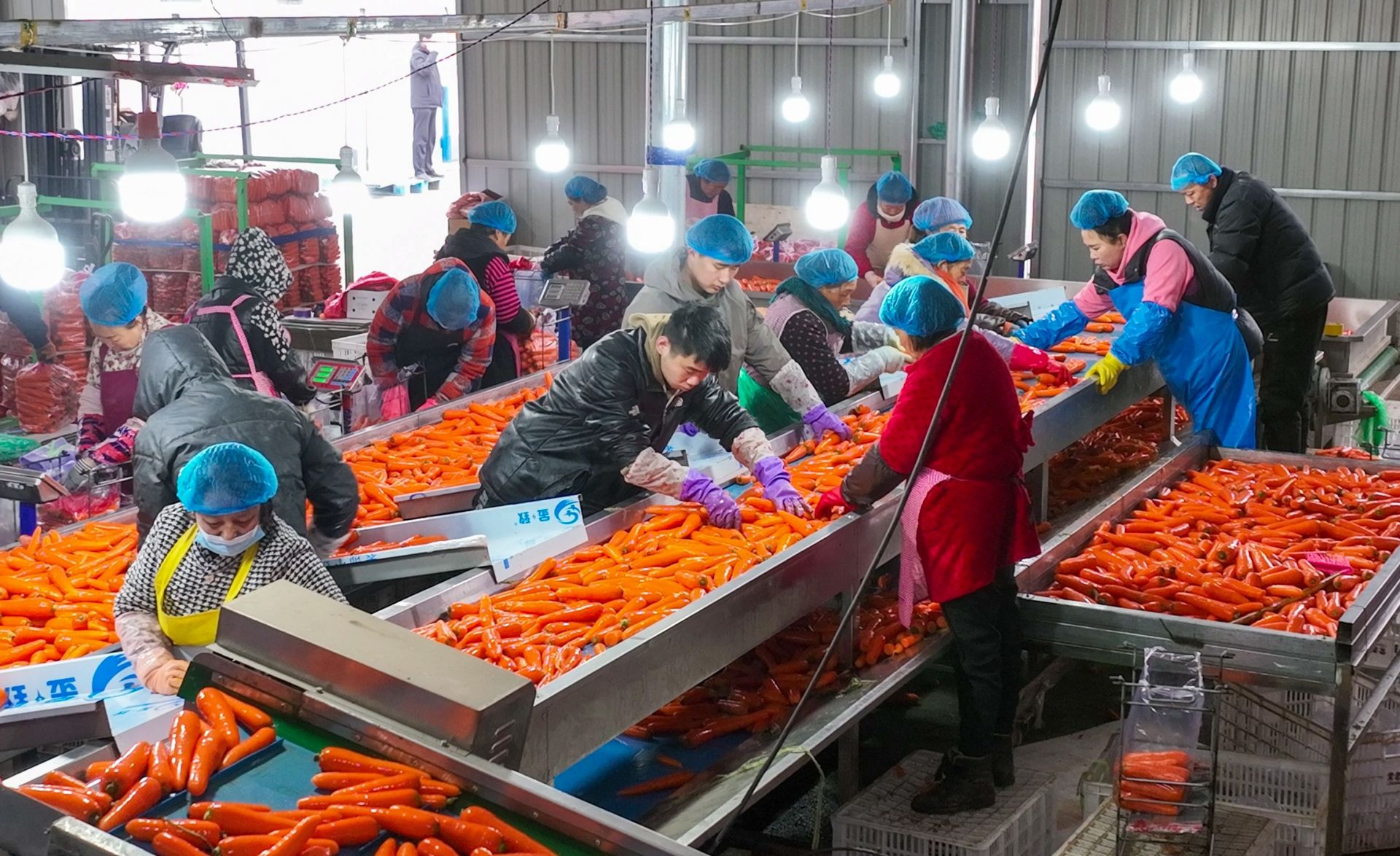 近日,在盐城滨海县界牌镇淮河村保鲜冷库,伴随着隆隆的机器声,一袋袋新鲜采收的胡萝卜被倒入自动化清洗机中,20多名工人正在进行分拣、打包、装车。胡萝卜产品销往全球市场,全年带动劳动力就业120人,年人均增收2万元以上。后期将扩大种植面积,并延伸产业链条,种植、加工、销售一体,为预制菜前端市场提供优质农产品。盐阜大众报报业集团融媒体 记者 杨毅 通讯员 吴泳伸 摄