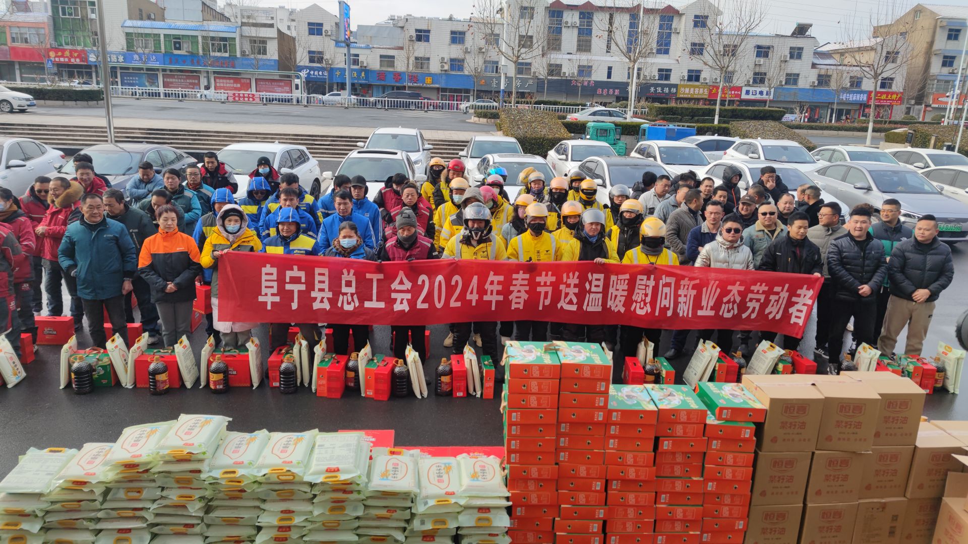 2月3日上午,阜宁县总工会在县文化中心开展“情系新业态· 工会送温暖”春节慰问活动,向快递员、网约车司机、外卖员等128名新就业形态劳动者代表赠送了米、油、松花蛋等慰问品和大礼包。阜宁县人大常委会副主任、总工会主席计俊参加活动。