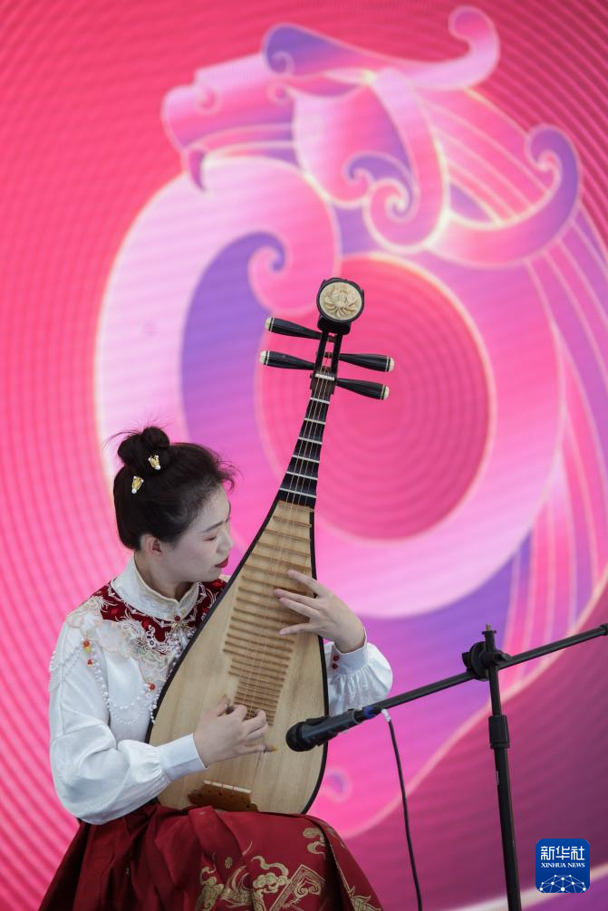 2月3日,演员在墨西哥首都墨西哥城国家艺术中心举行的第三届中国新年文化节上表演。新华社发(弗朗西斯科·卡涅多摄)
