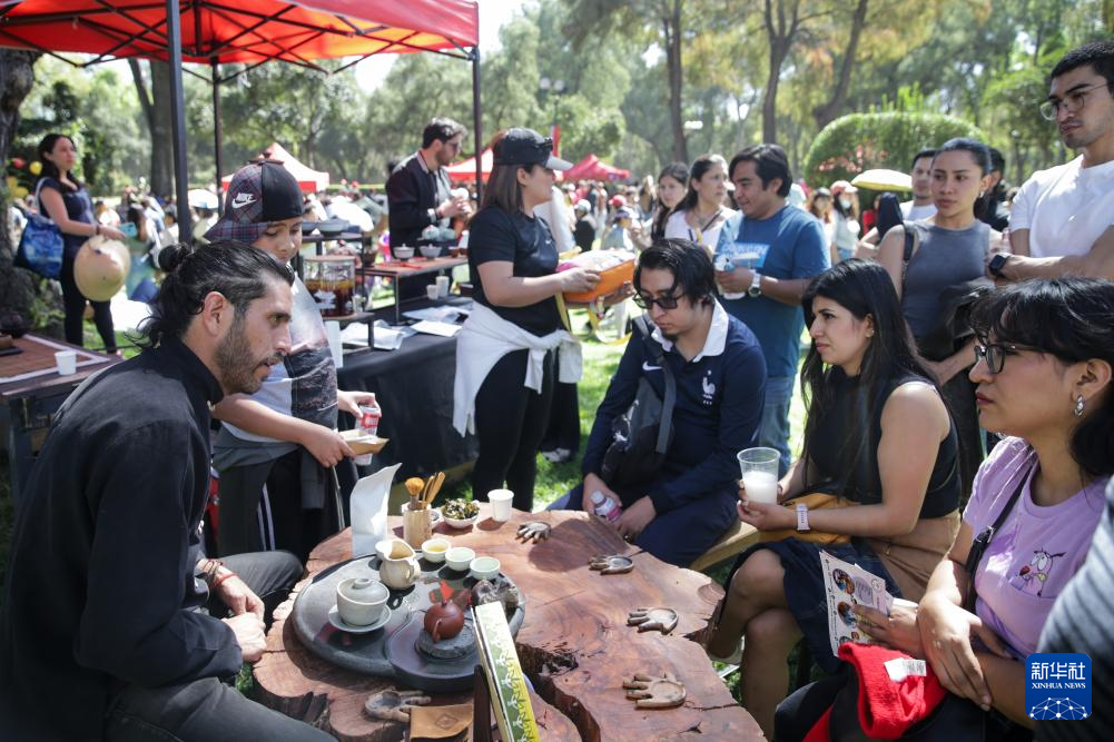 2月3日,当地民众在墨西哥首都墨西哥城国家艺术中心举行的第三届中国新年文化节上体验中国茶艺。新华社发(弗朗西斯科·卡涅多摄)