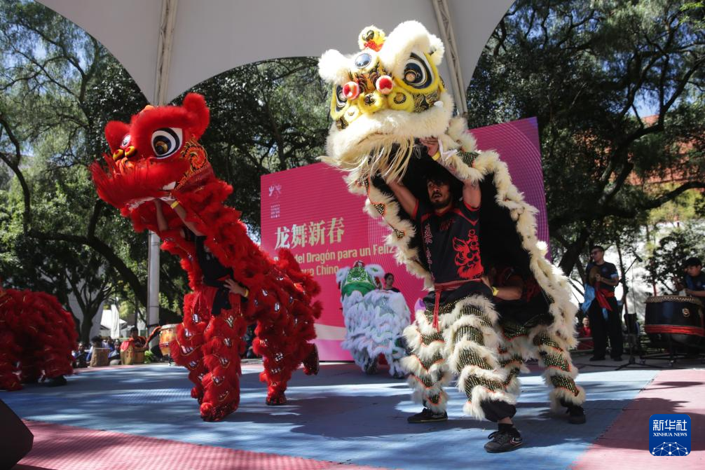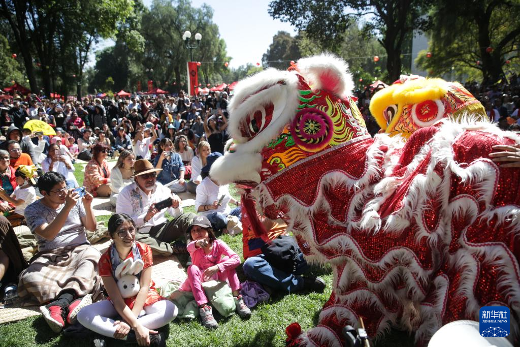 2月3日,演员在墨西哥首都墨西哥城国家艺术中心举行的第三届中国新年文化节上表演舞狮。当日,第三届中国新年文化节活动在墨西哥城国家艺术中心开幕。活动现场不仅有太极、民乐、武术、舞龙舞狮等精彩表演,也有国画、围棋、书法、茶艺等工作坊让观众亲身体验。在丰富多彩的活动中,18000余人共同迎接中国龙年的到来。新华社发(弗朗西斯科·卡涅多摄)