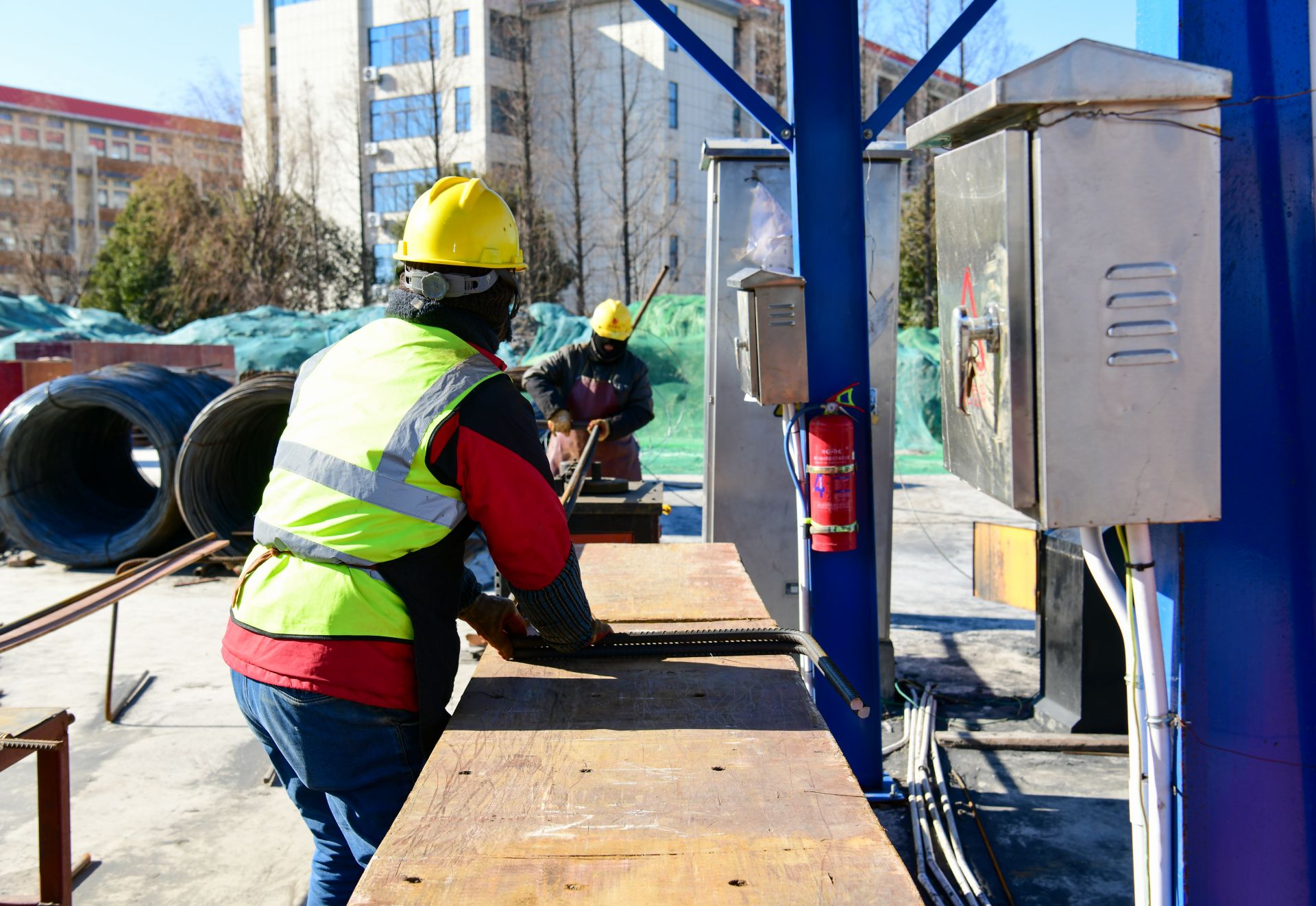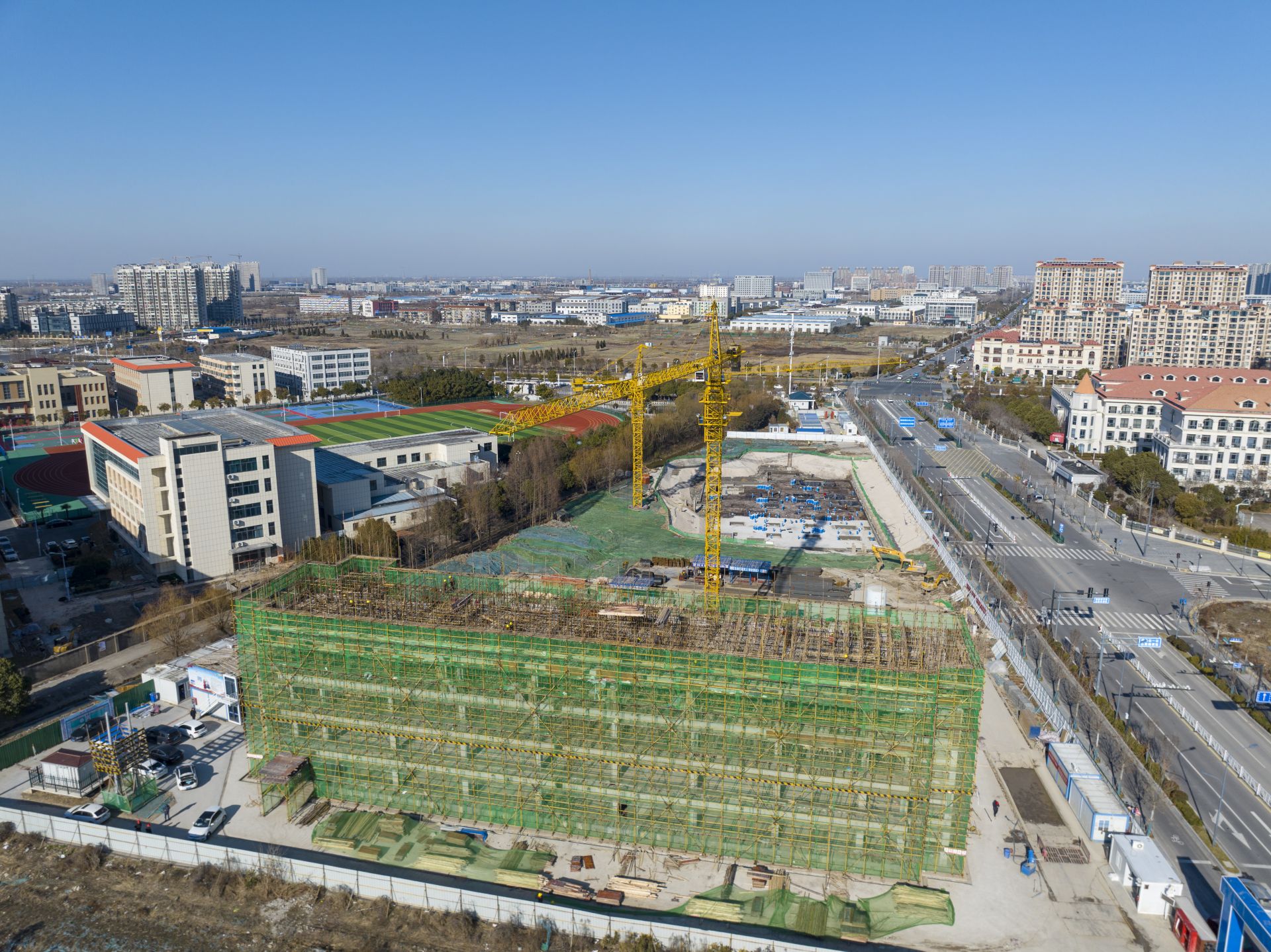 2月7日,在盐实高改扩建项目现场,工人在加紧施工,全力推进项目建设进度。由市城投集团代建实施的盐实高改扩建项目位于兴城路西侧,新洋中学(北闸沟)东侧,占地面积约21.47亩。宿舍楼建筑面积4191平方米,高度18.8米,五层,层高3.7米;风雨操场建筑面积5305平方米,其中地下面积约2000平方米(含人防面积约1761.8平方米)地上面积3305平方米,二层,高度12.3米,层高6米。盐阜大众报报业集团融媒体记者 杨毅 摄 责任编辑:胥文菁 王敏 胡祥