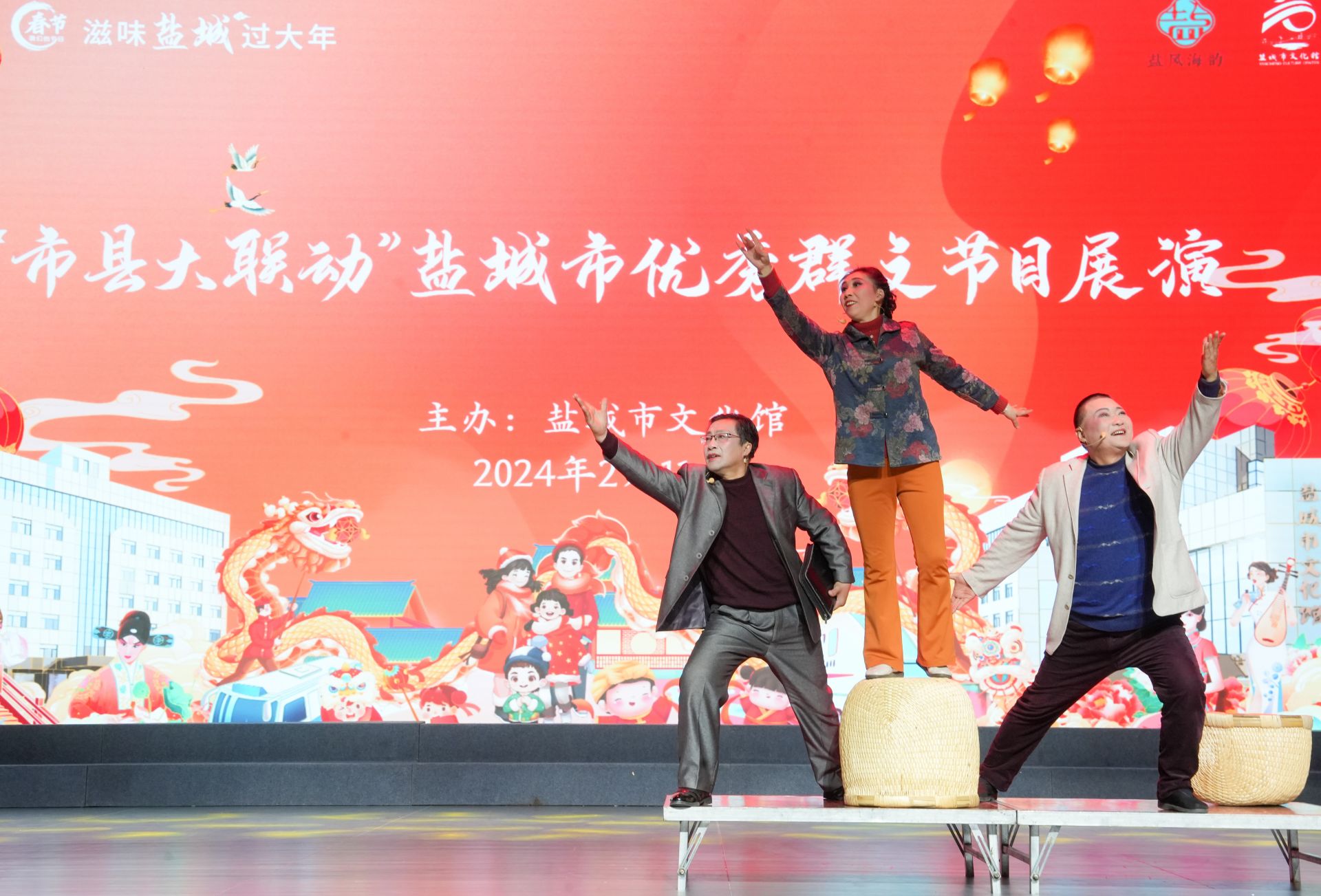 2月11日,市文化馆主办, 各县(市、区)文化馆协办,展示我市群文精品创作成就的“我们的中国梦 文化进万家——盐城好玩呢”市县大联动群文大汇演在市文化馆群星剧场举行。春节期间,市文化馆好戏连台、异彩纷呈、人气火爆,市县联动、戏剧、曲艺等专场接连上演。推出多门类的精彩演出,满足不同人群的精神文化生活需要,彰显出群星剧场的独特魅力与吸引力。盐阜大众报报业集团融媒体 记者 周晨阳 摄 责任编辑:严成 胡祥