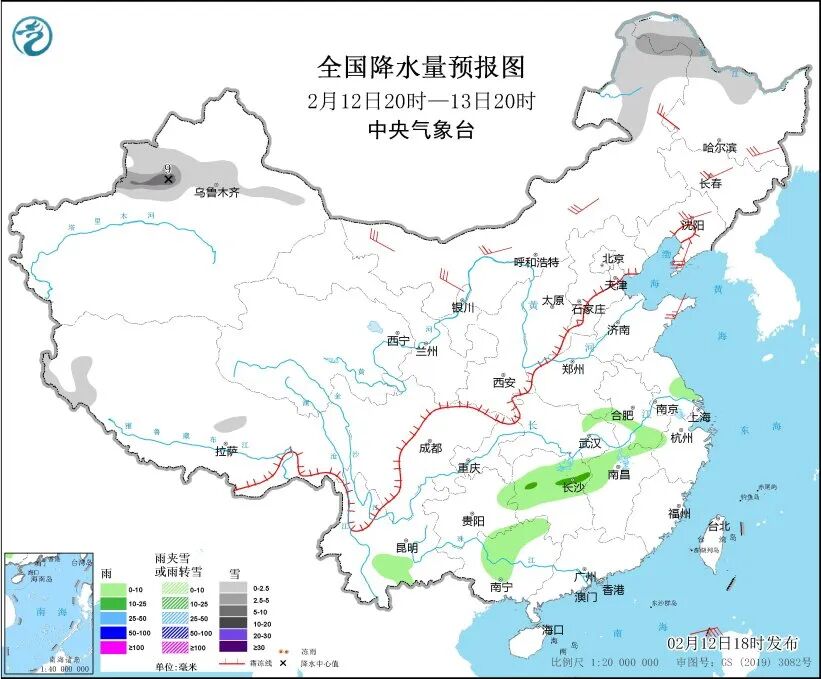 中央气象台预计,12日20时至13日20时,内蒙古东北部、黑龙江西北部、新疆北部等地部分地区有小到中雪,其中,新疆伊犁河谷等地部分地区有大雪。安徽西部、湖北东北部、湖南北部、江西北部、广西中北部等地部分地区有小到中雨。