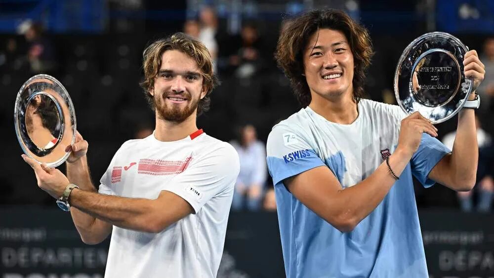 △张之臻(右)与搭档马哈奇在颁奖仪式上(图片来自ATP巡回赛官网)