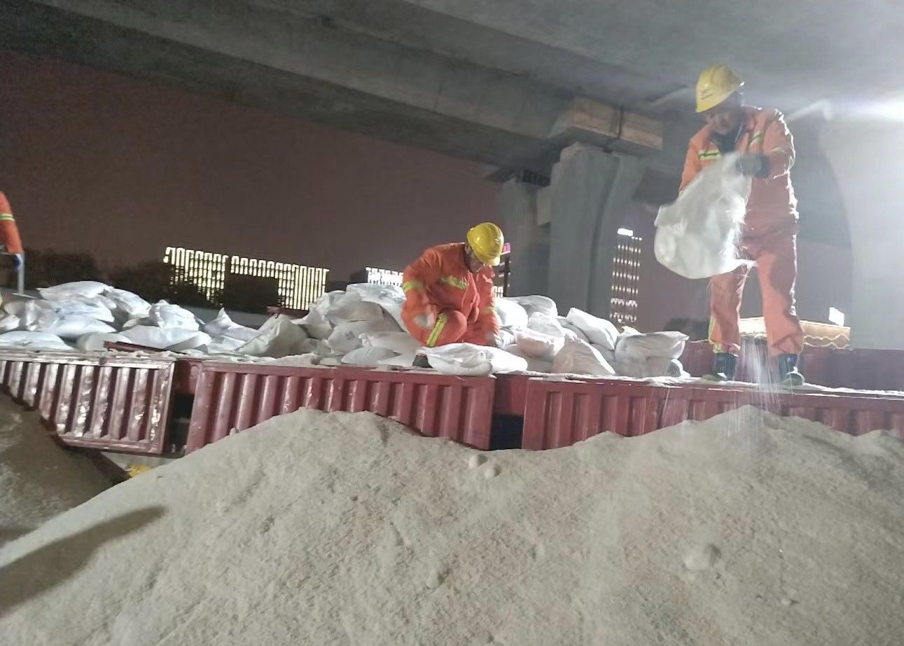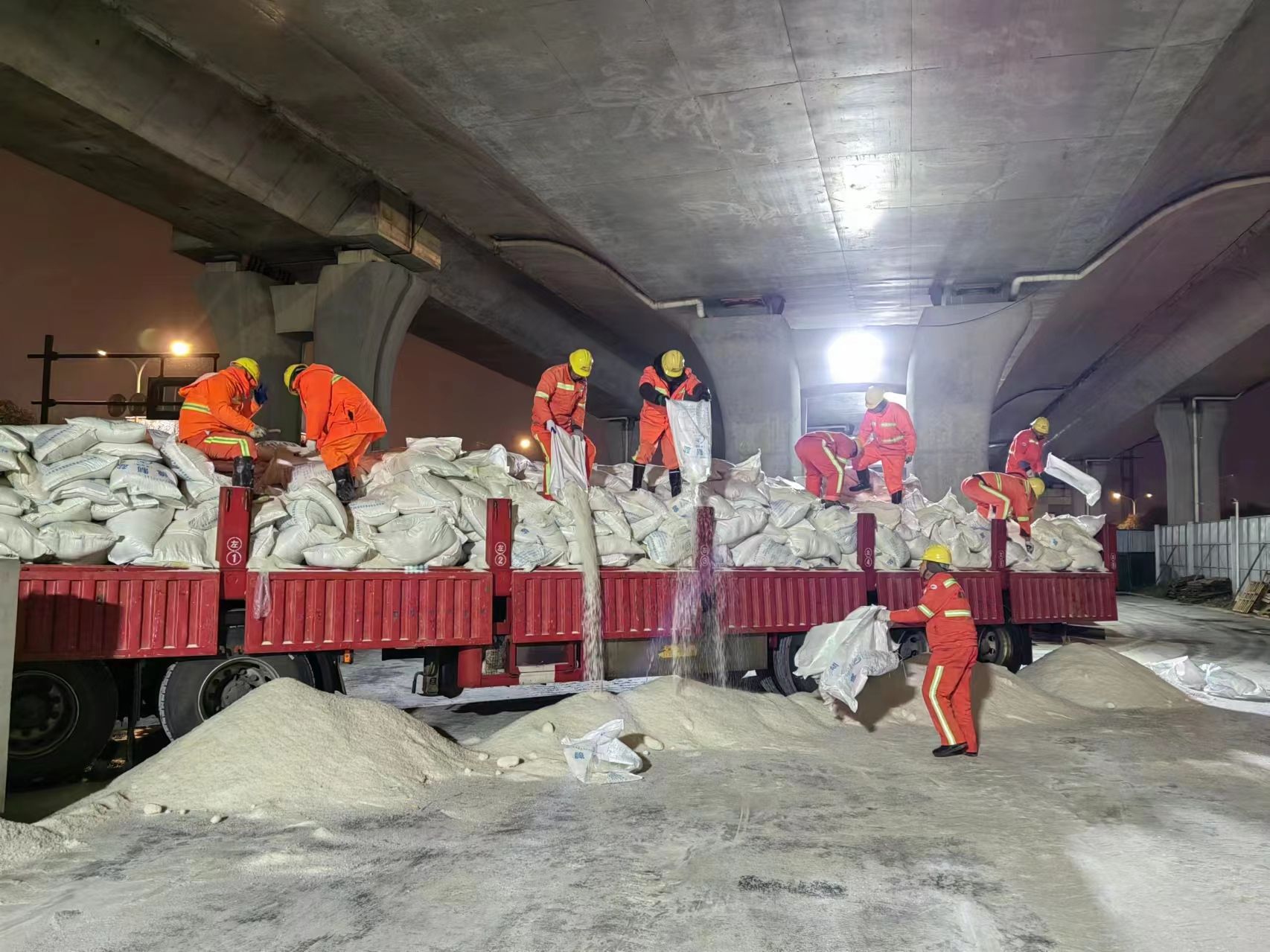 面对这几天的雨雪冰冻天气,负责我市高架养护的盐城市公路工程有限责任公司打响新春除雪“第一战”,从2月22日起全员进入应急状态,除雪车、人工除雪相结合,连夜除雪除冰,截至目前已累计出动养护人员240人次,车辆100车次,使用工业盐550吨,全面做好清雪除冰应急保障工作,切实保障我市高架路在龙年首场恶劣天气下的交通畅通。盐阜大众报报业集团融媒体记者 宋晓华 摄