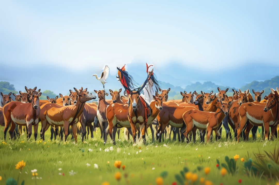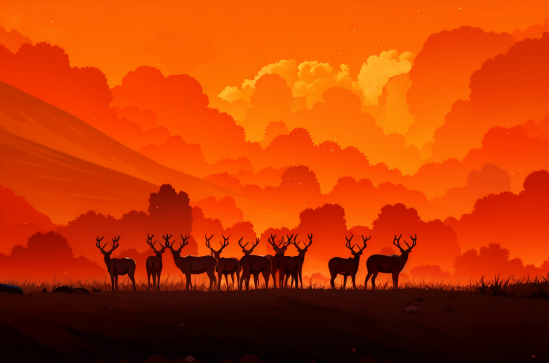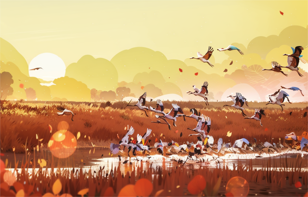 呦呦麋鹿在广袤湿地上追逐欢腾