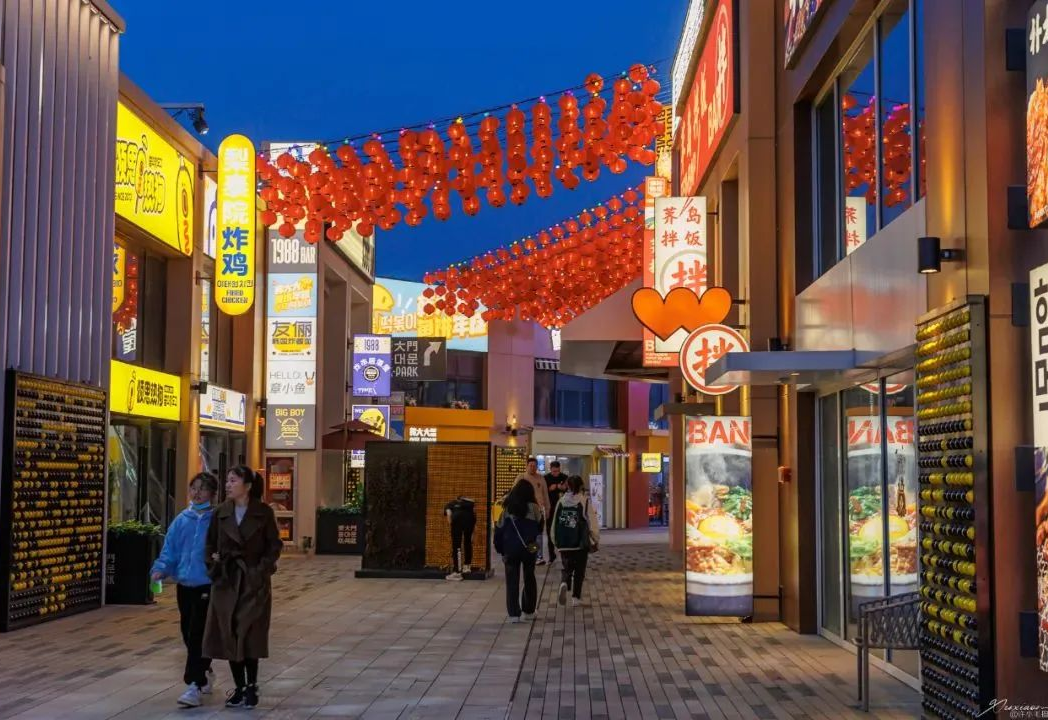 街区紧扣中韩文化主题,划分为“一衣带水”“双城故事”“浪漫满屋”以及“花好月圆”四大区域,将中韩文化交流巧妙融合,打造独具国际文化特色的潮流中心、社交中心、休闲娱乐中心。