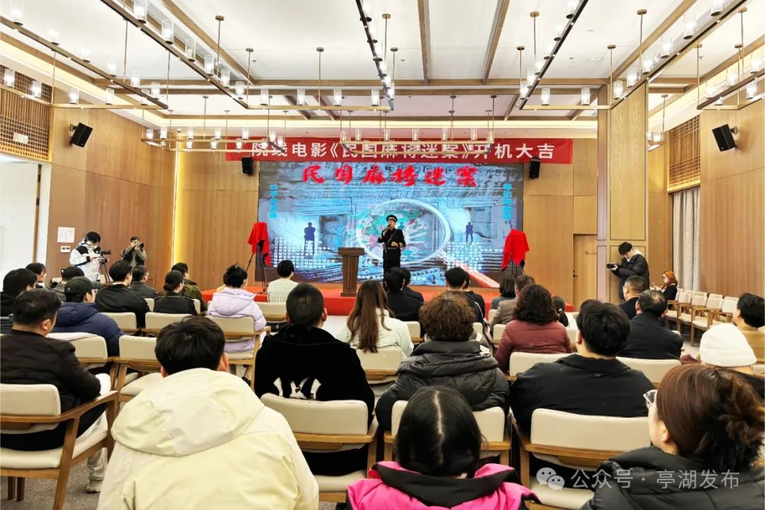 3月10日,院线电影《民国麻将迷案》在亭湖区举行开机仪式。该片编剧、导演炼熔,制片人甘之润、张继月、张记,以及主演梁爽、李正国、吴思腾、卜奕心、周伊婧等悉数亮相。
