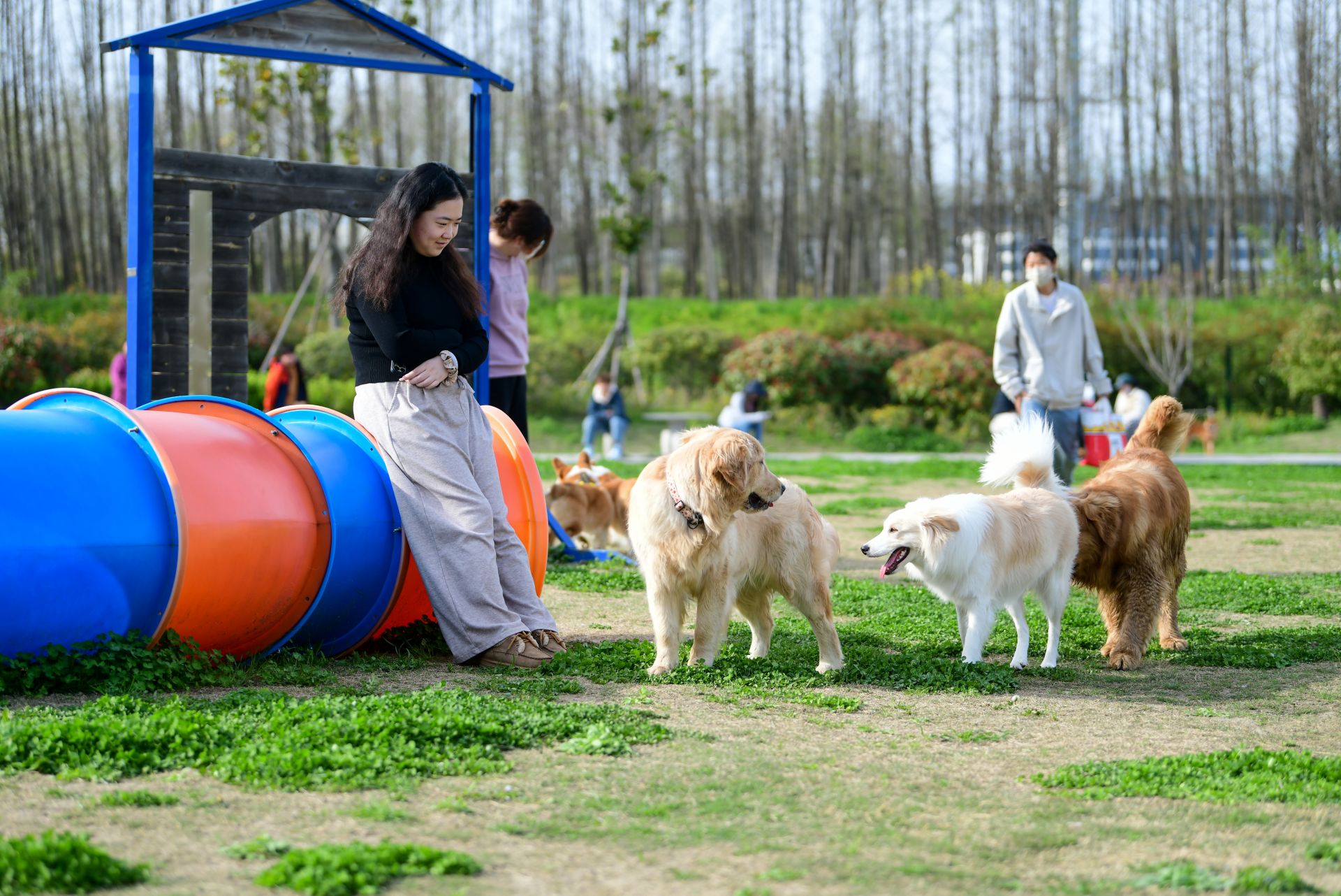 4月5日,在盐城大马沟宠物公园,不少市民正带着宠物在各种设施上“训练”,一派人宠和谐的欢乐景象。据了解,宠物公园仿照汽车4S店的模式,能够为每只来到公园游玩的宠物提供训练、美容、寄养等一系列量身定制的服务。今后,公园还将不定期开展萌宠大赛、萌宠相亲等创意社交,让养宠一族在这里找到更多志同道合的朋友。记者 杨毅 摄
