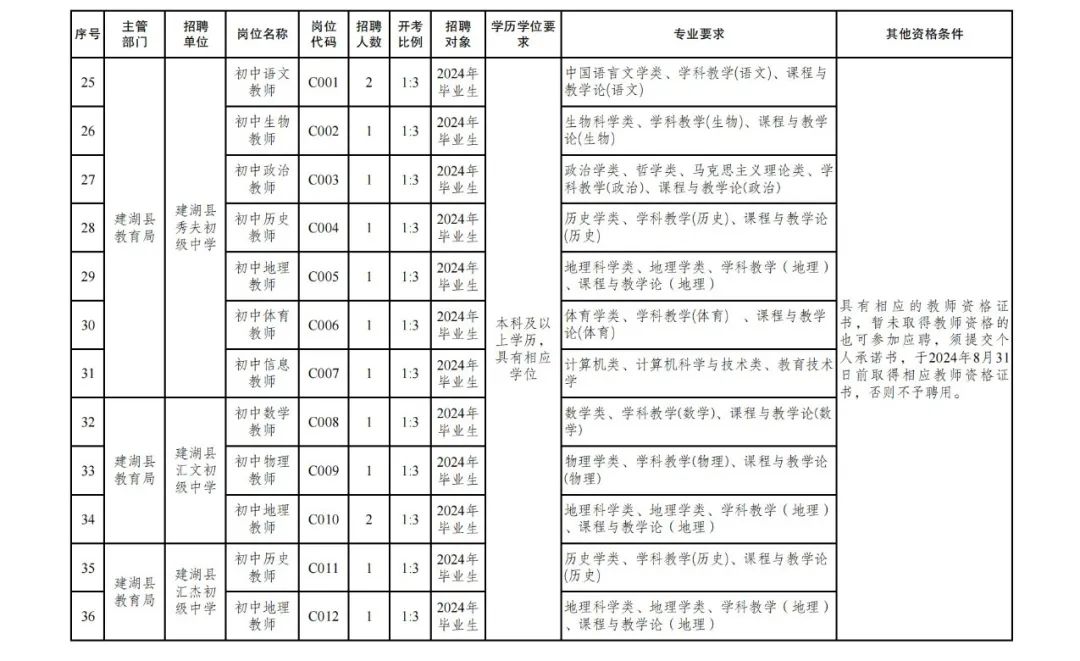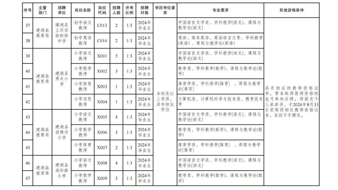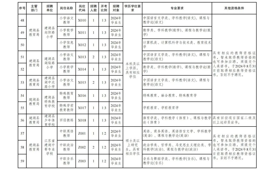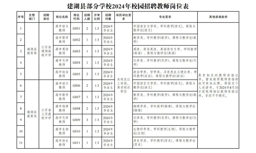 根据教育事业发展和教师队伍建设的需要,建湖县部分学校决定赴高校招聘教师105名。