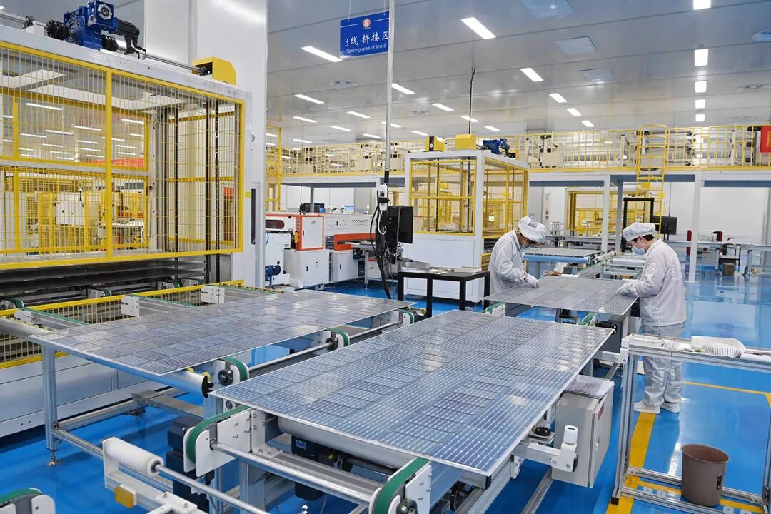 江苏悦阳光伏科技有限公司智能化无尘车间内,自动导引运输车穿梭不歇,一件件光伏组件产品陆续完成生产下线。公司副总经理王广社表示,自落户以来,公司已实现产值超100亿元。当前,公司正紧锣密鼓地规划布局悦阳三期项目,为打造百亿企业而努力奋斗。江苏悦阳光伏在建湖的发展壮大,吸引带动了宏元达、鹿山、晖朗等一批链条企业前来投资兴业,推动该县光伏产业产生集群效应,较好地完成上下游产业链的打造和融合。几公里外的盐城高测新能源科技公司作为上游厂商,生产的大硅片主要供应给悦阳光伏。据总经理助理孟宪春介绍,二期项目投产后公司可实现年产20GW单晶硅片,开票销售80亿元。